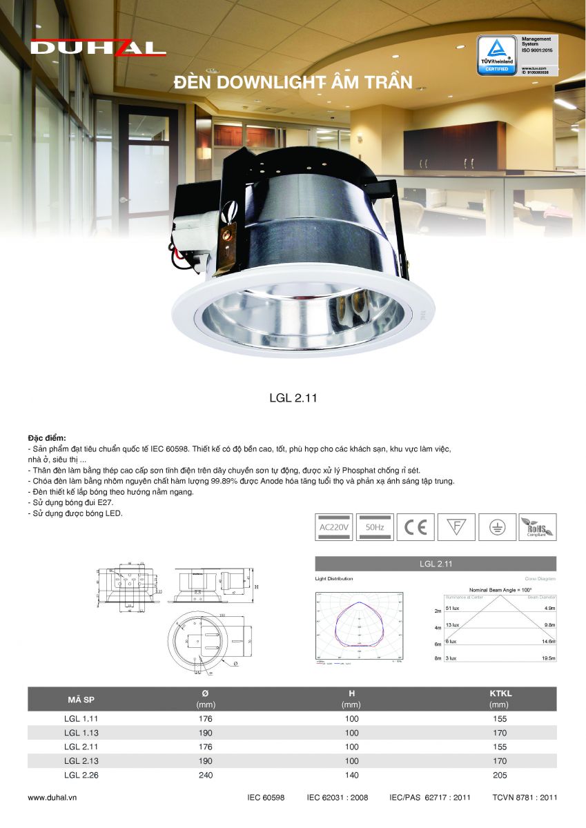 LGL 1.11 : Đèn downlight âm nằm Duhal viền sơn trắng 3W
