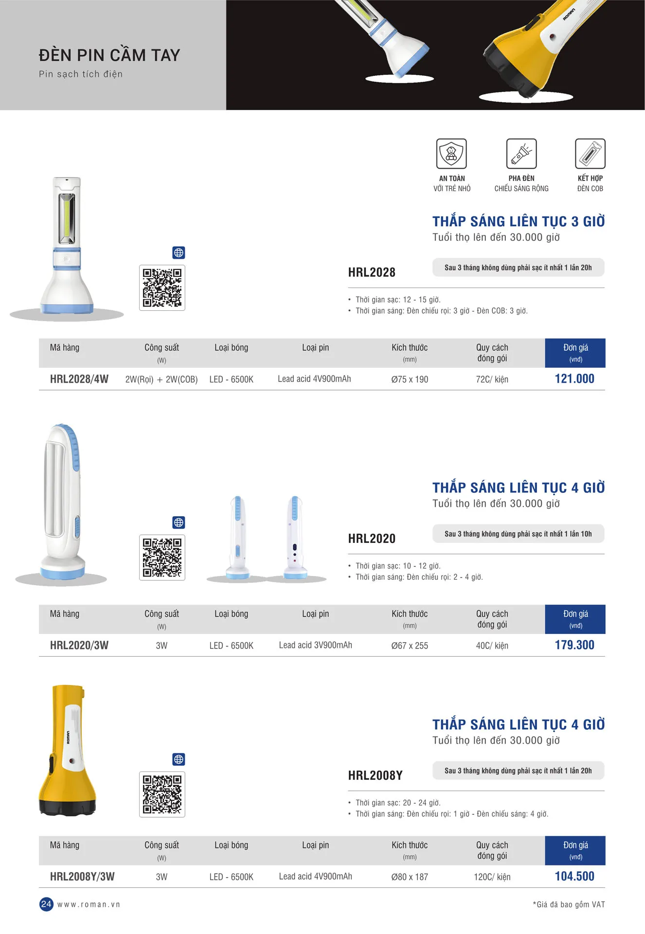 Đèn pin LED Roman HRL2020/3W chất lượng tốt, đồ bền lâu, chiếu sáng thời gian dài, giá cả phải chăng, là thiết bị gia dụng được nhiều khách hàng lựa chọn.