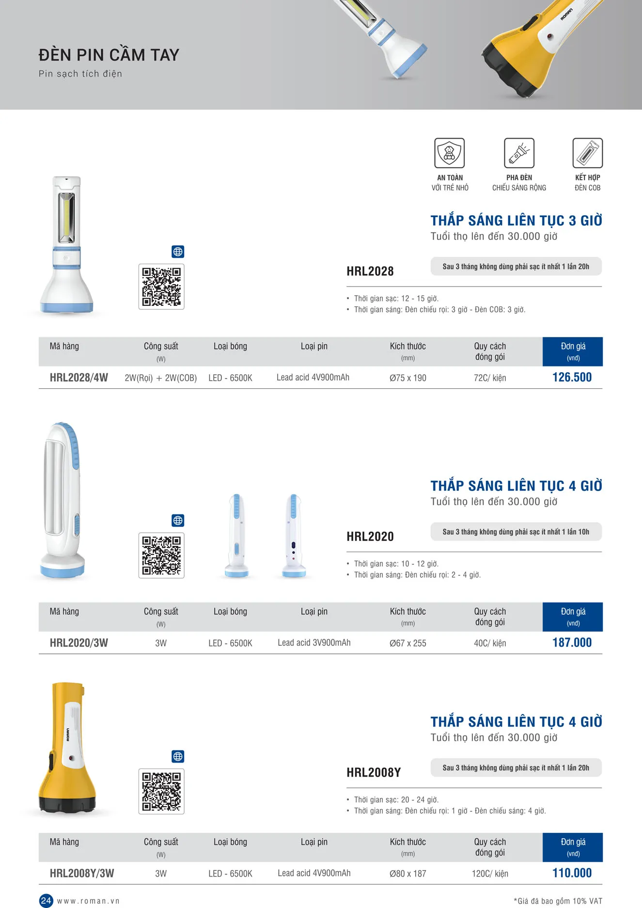 I. Đặc điểm của đèn pin LED Roman HRL2028/4W