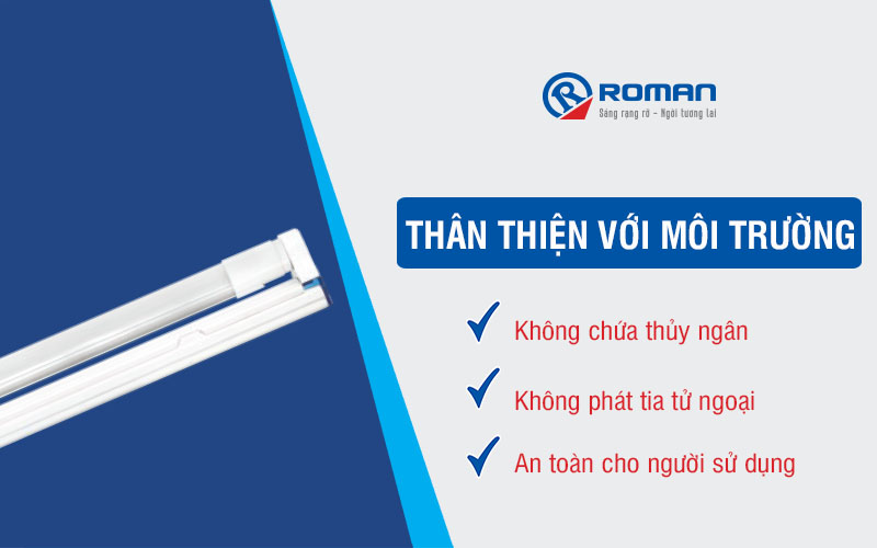 - Sản phẩm đèn tuýp LED siêu sáng của Roman không chứa thủy ngân gây độc hại cho môi trường, đèn thân thiện với môi trường.