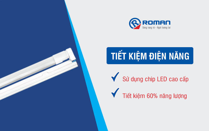 Đèn tuýp led Roman giúp tiết kiệm 50-60% chi phí điện năng so với đèn huỳnh quang.