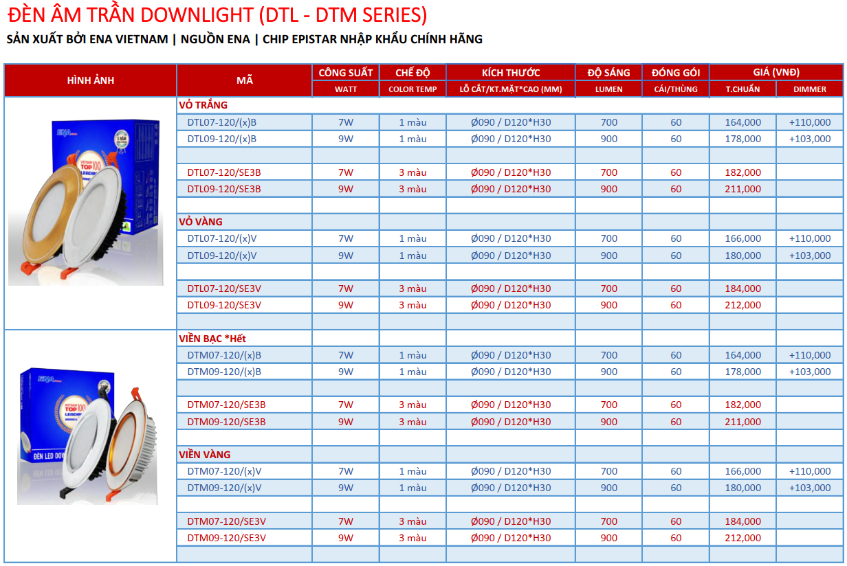7W - 1 màu | DTL07-120/(x)B | Ø090/D120*H30 | 205.000 | 35% | 133.250 |