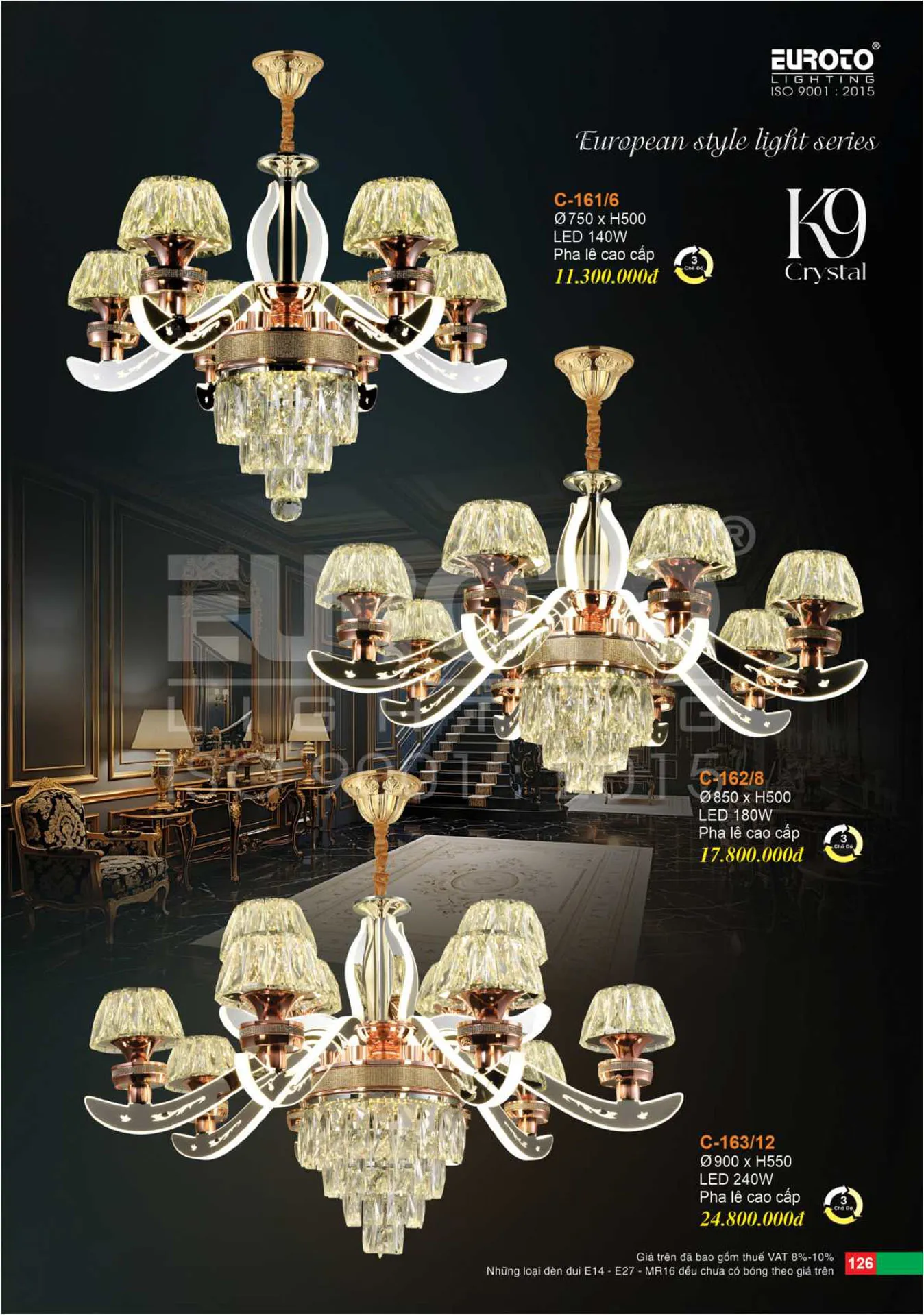 Đèn chùm pha lê cao cấp Ø900*H550 LED 240W (3 chế độ ánh sáng, có remote)