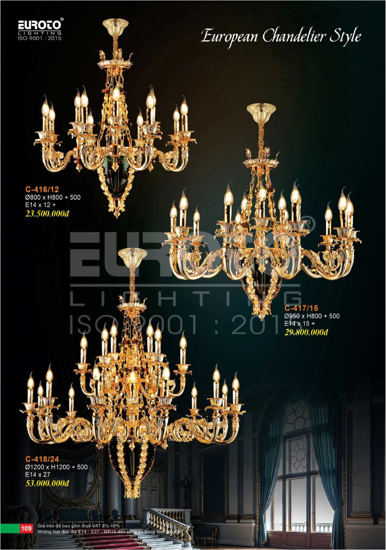 Đèn chùm nến Ø950*H800 + 500 - E14*15 +