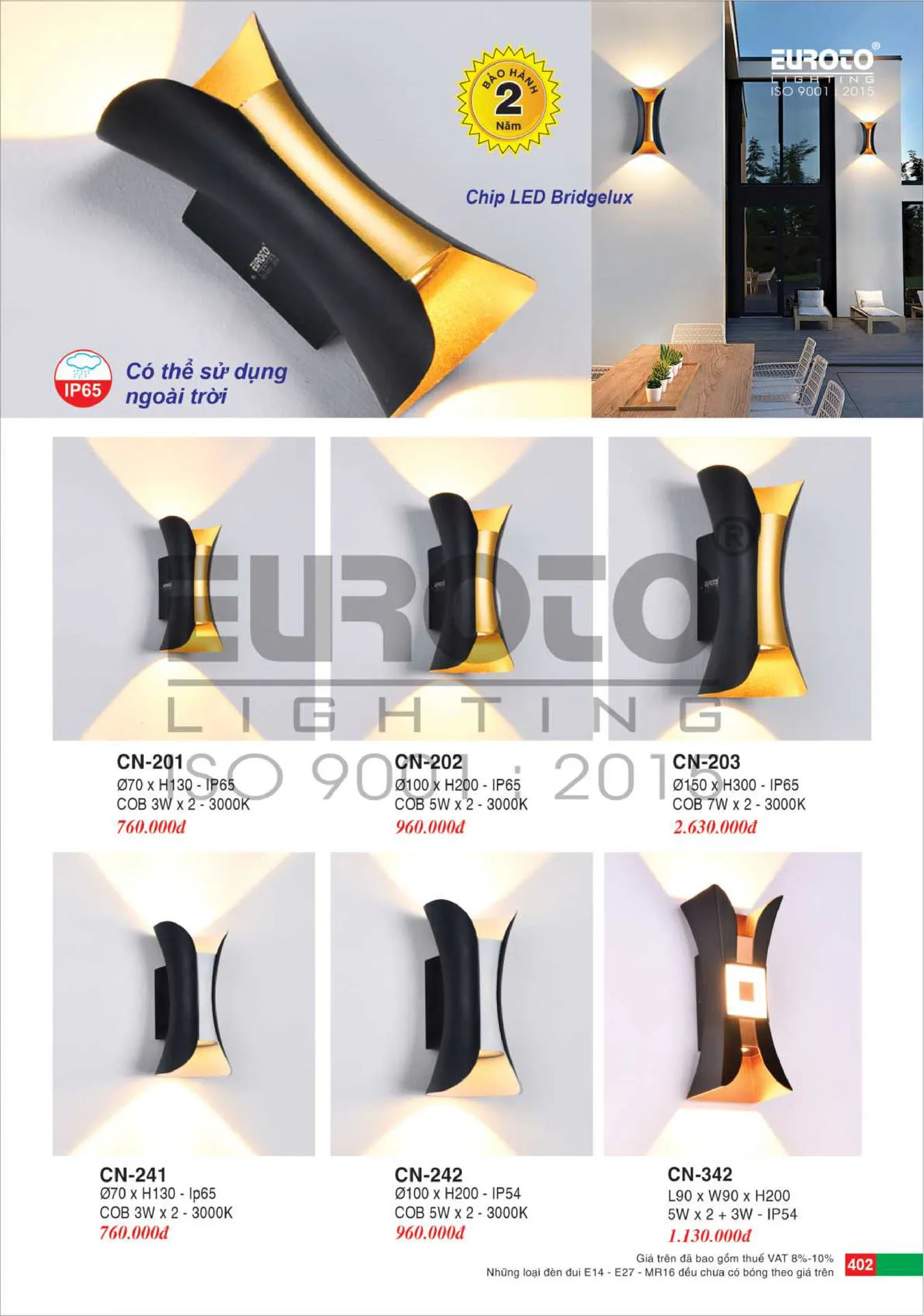 Hình ảnh mang tính chất tham khảo, vui lòng xem kỹ mã hàng và mẫu mã từ hãng. Đèn tường trang trí Euroto CN-342 IP 65 Thương hiệu: Euroto Mã sản phẩm: CN-342 - 40% 1.130.000 ₫ 678.000 ₫ Giá ưu đãi tốt hơn khi mua số lượng nhiều NHẬN BÁO GIÁ SẢN PHẨM * Nhân viên sẽ gửi báo giá & tư vấn qua Zalo hoặc Email của Quý khách trong vòng 24h làm việc. GỬI YÊU CẦU Loading...
