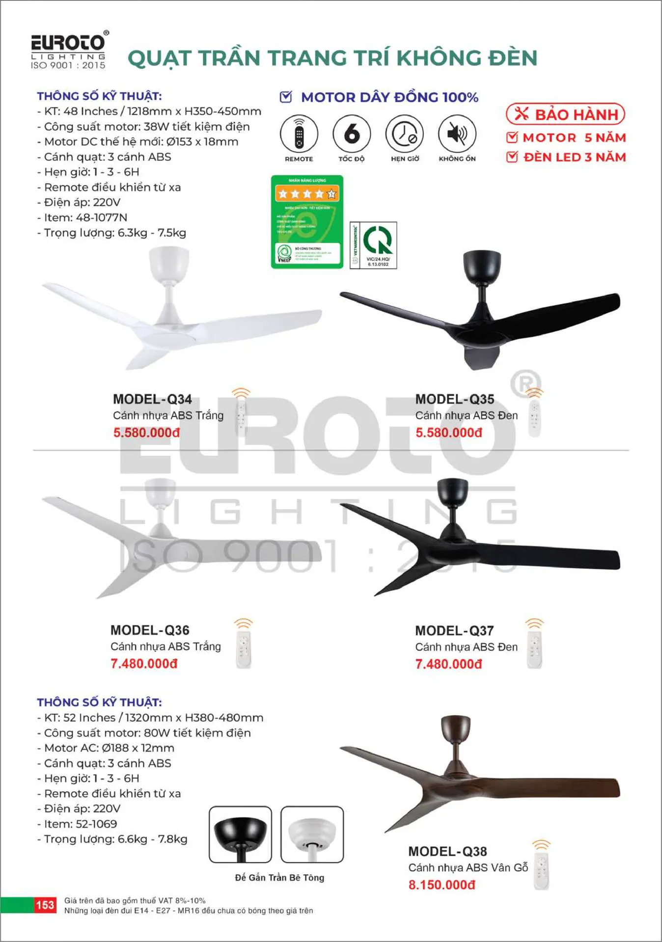 Quạt trần 3 cánh Euroto MODEL-Q37 Ø132cm