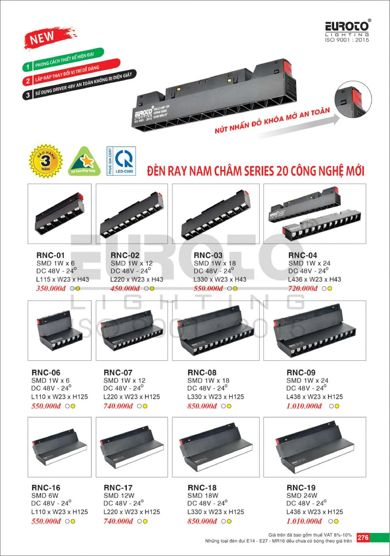 Đèn thanh ray nam châm Euroto RNC-02 L220 x W23 x H43
