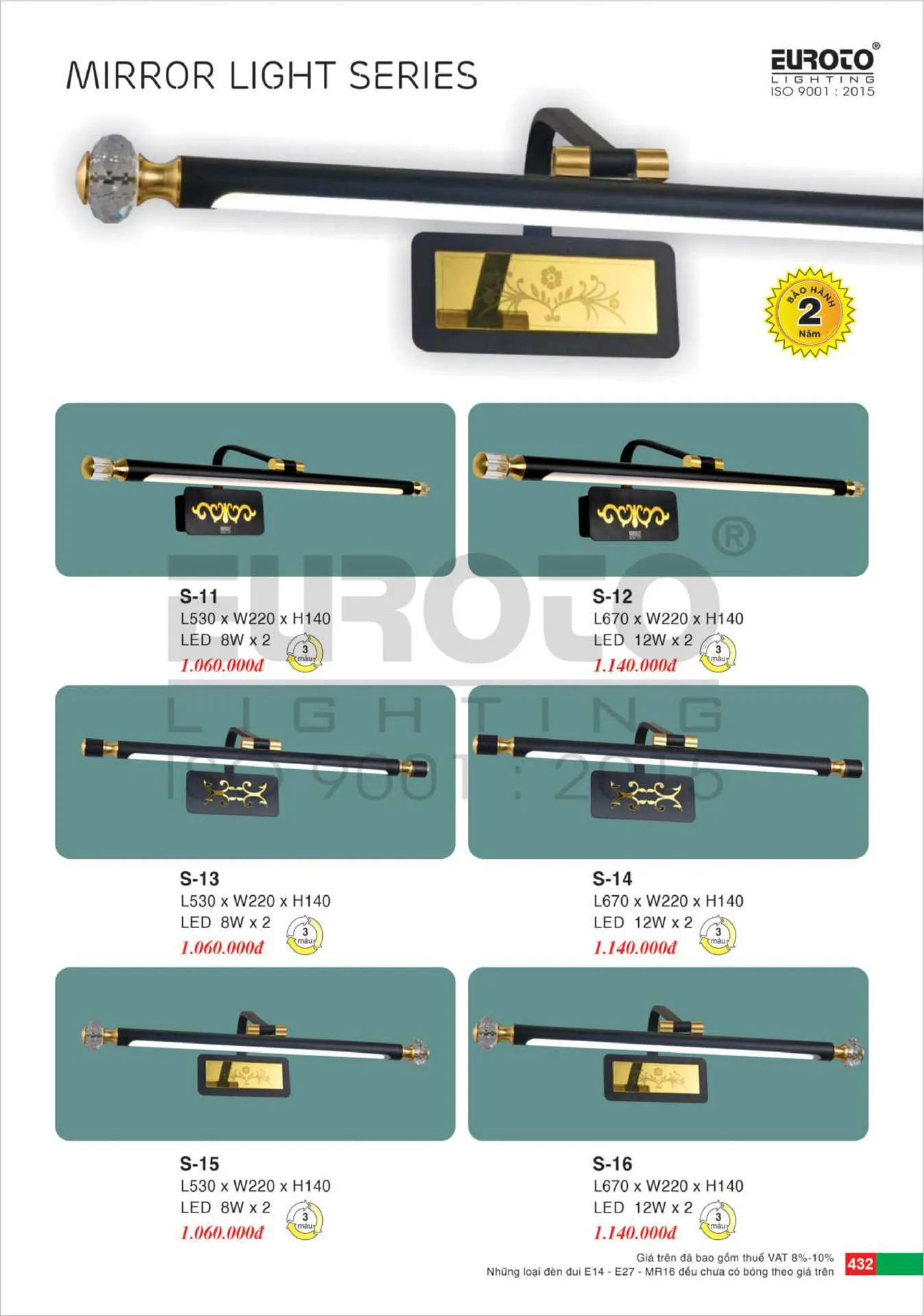 Đèn gương Euroto L530*W220*H140, Led 8W*2, 3 màu ánh sáng
