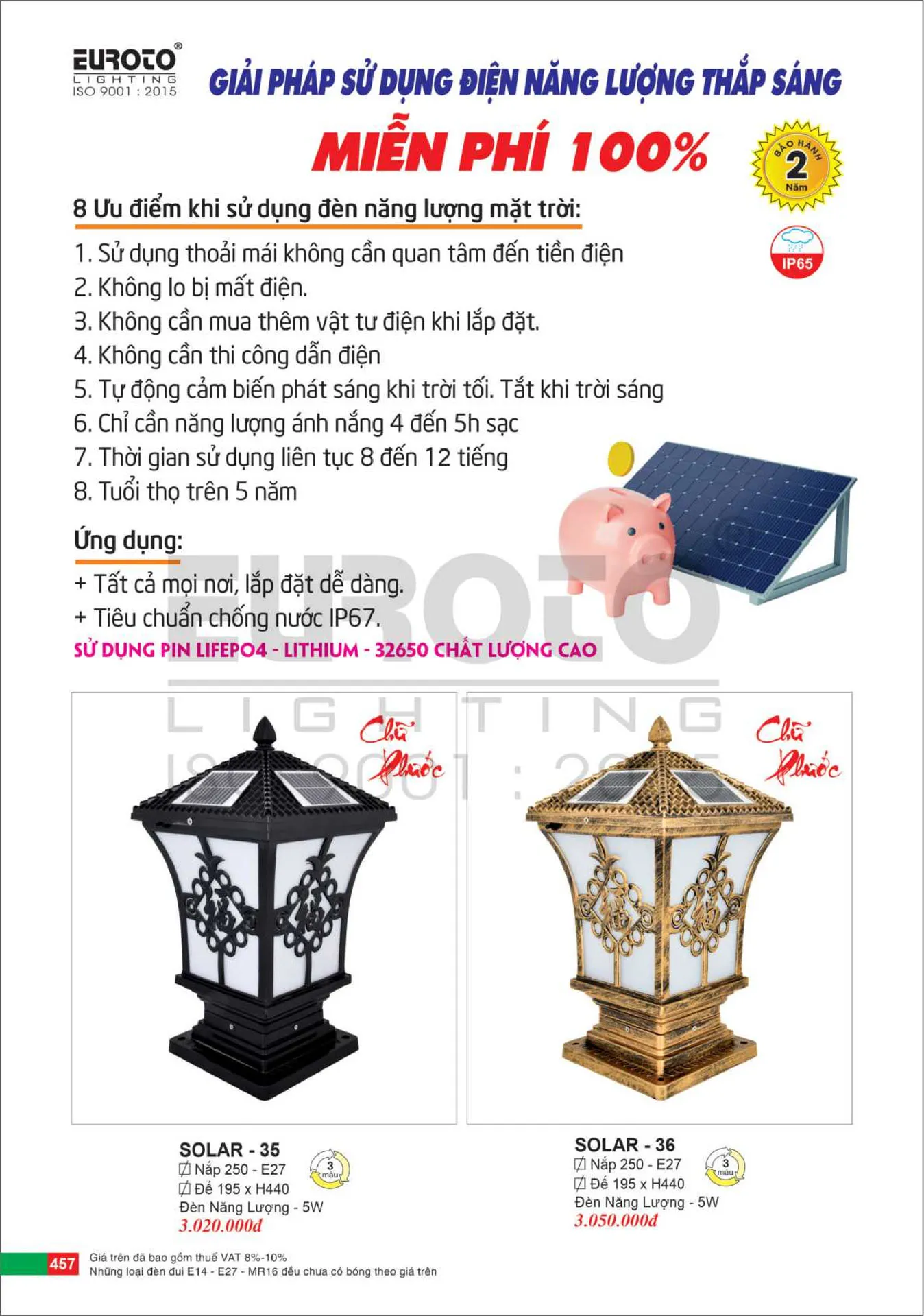 Đèn Trụ Cổng Euroto Vuông 5W: Nắp: Ø250-E27 - Đế: Ø195*H440, Vỏ Đen