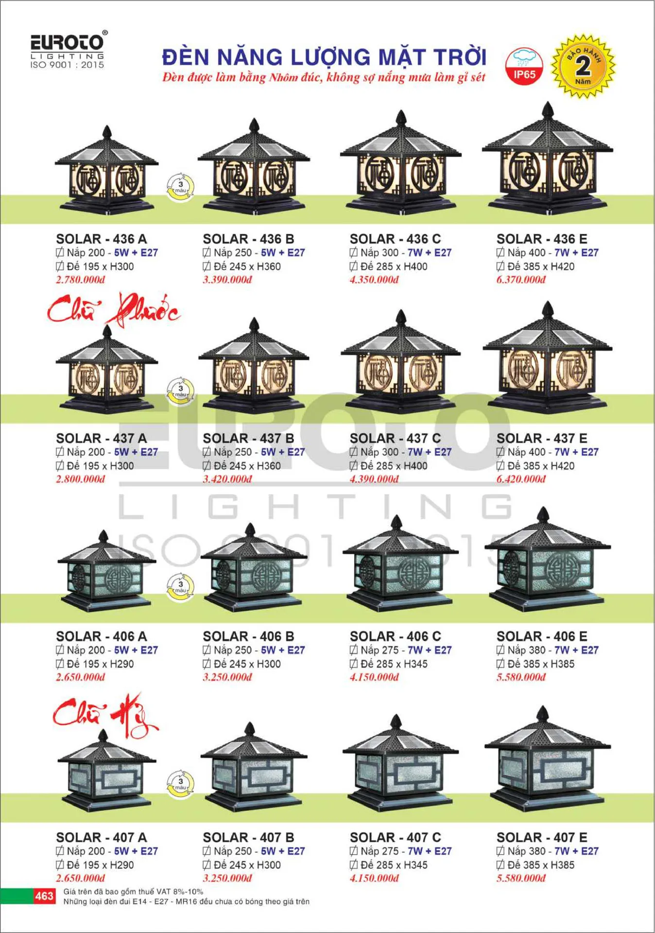 Loại nắp Ø300-7W+E27, Đế Ø285*H400 | SOLAR-437C | 4.390.000 | 40% | 2.634.000 |