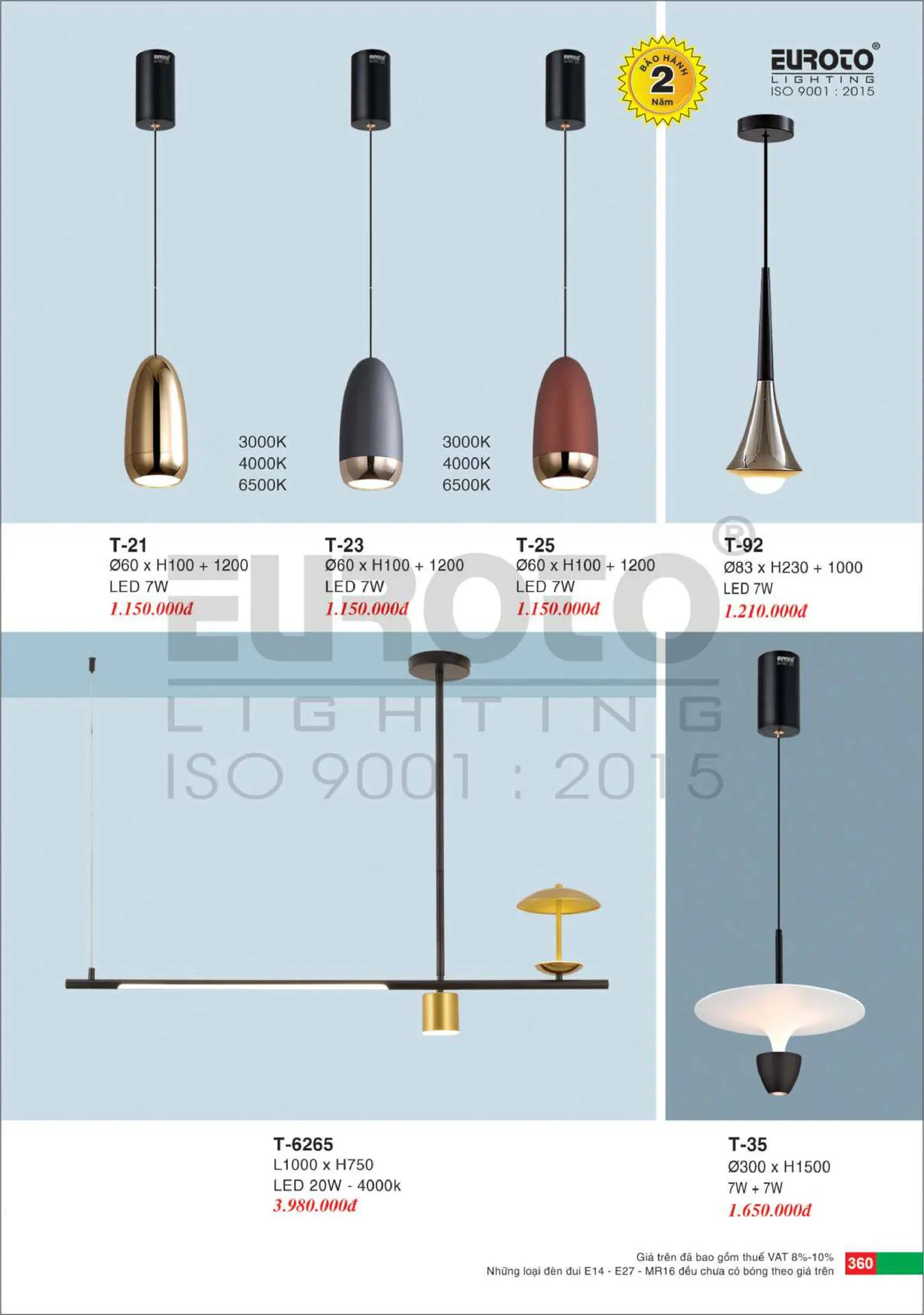 Đèn treo Euroto T-35 Ø300*H1500 7W + 7W