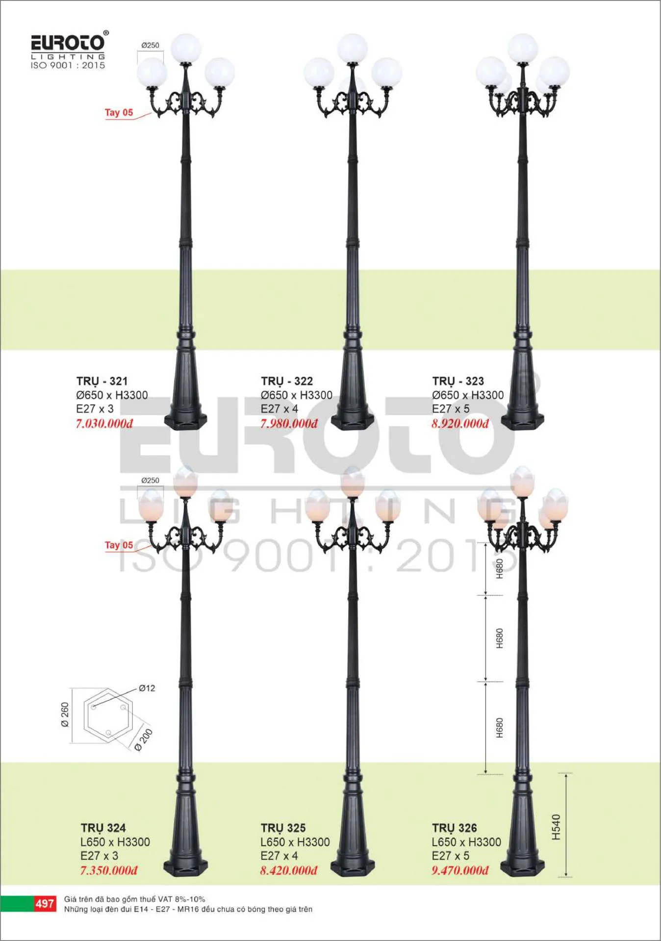 Đèn trụ sân vườn TRŲ 323 Ø650 x H3300 E27 x 5