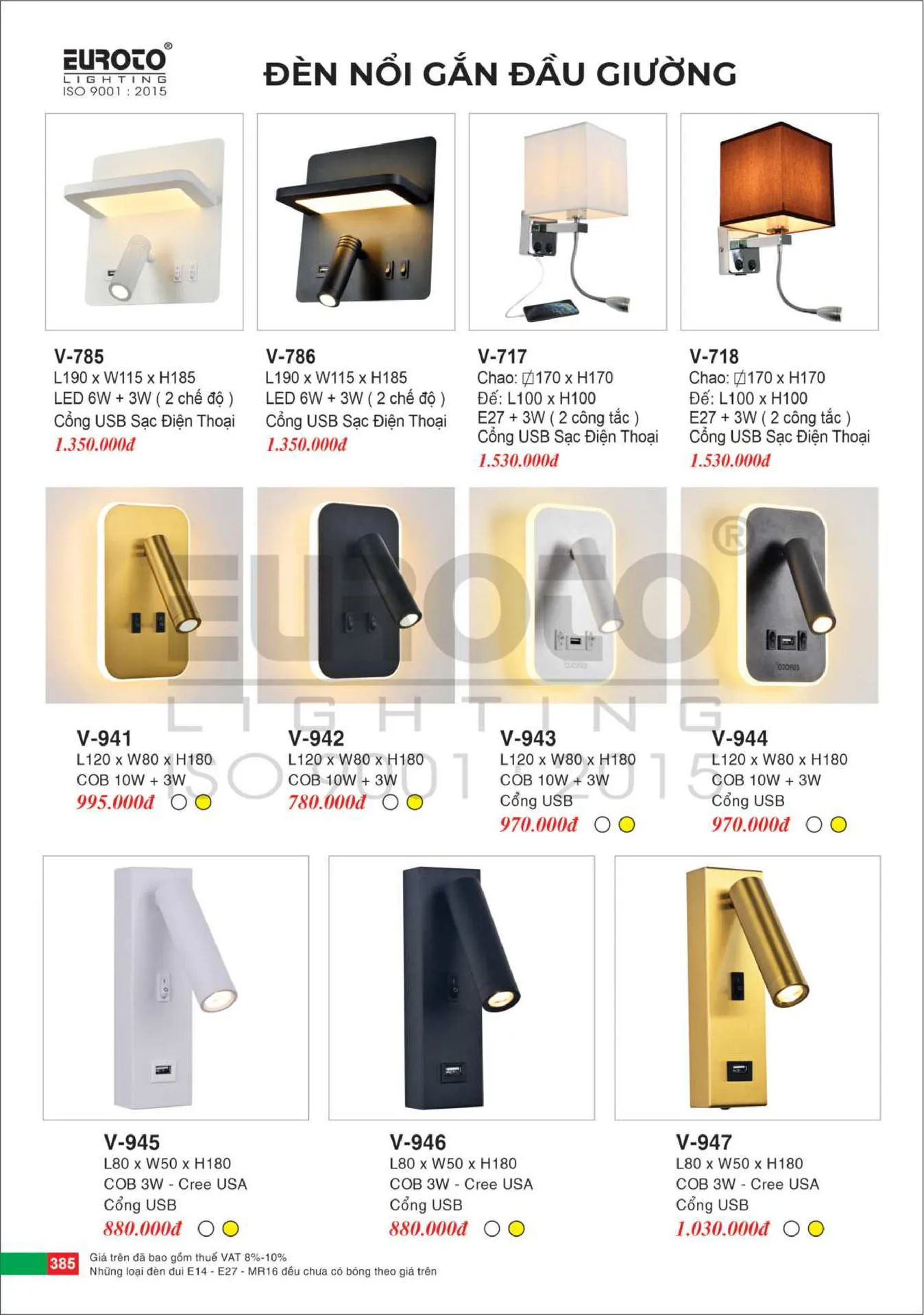 Đèn gắn đầu giường Euroto V-945 L80 x W50×H180 COB 3W
