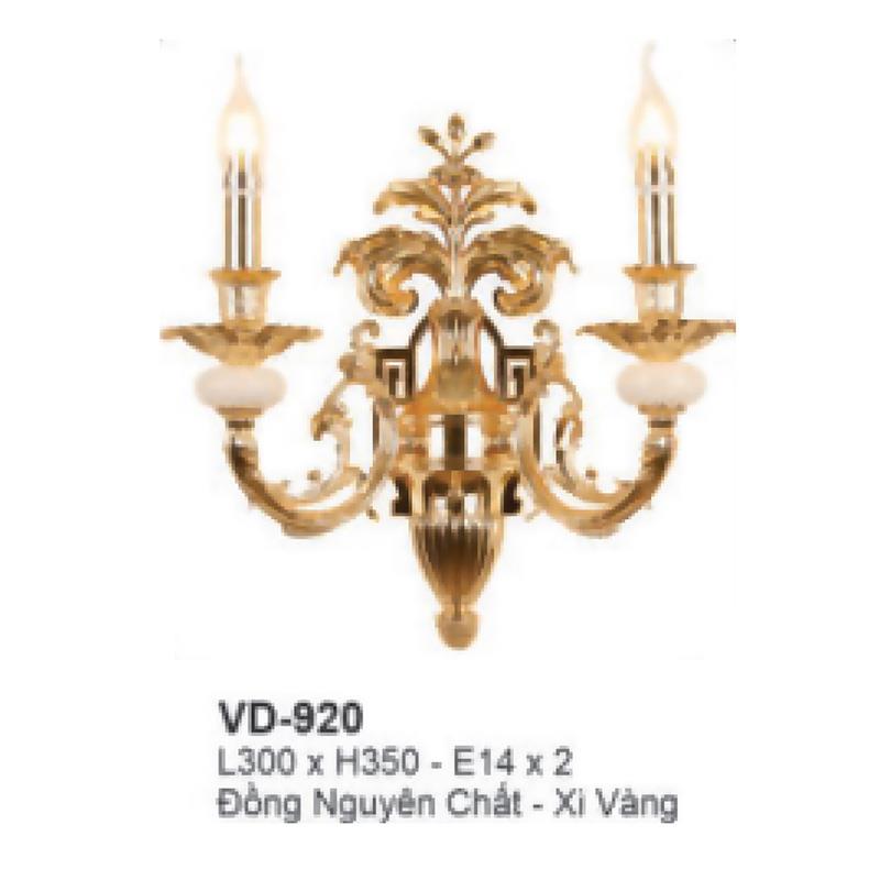 Đèn tường nến đồng L300*H350 - E14*2 - Đồng Nguyên Chất - Xi Vàng
