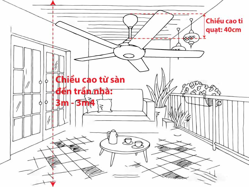 Để đảm bảo an toàn cho người dùng và có được hiệu quả sử dụng tối ưu bạn nên lựa chọn quạt theo chiều cao trần nhà.