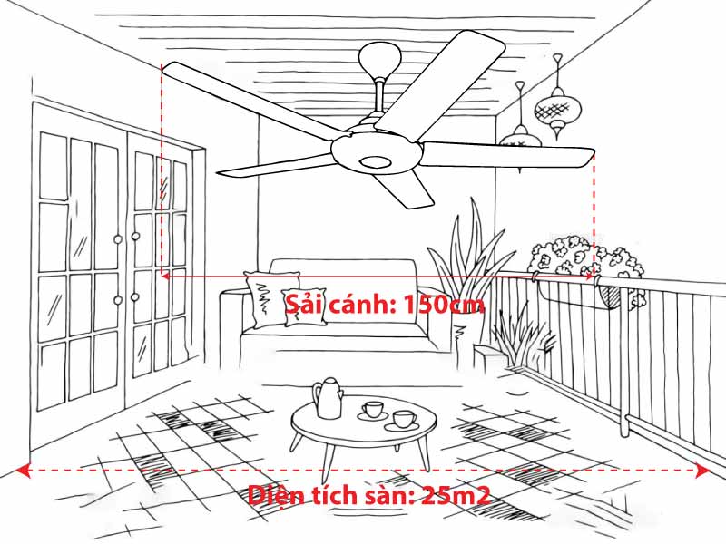 Tùy theo diện tích căn phòng như nào mà bạn nên chọn kích thước sải cánh phù hợp để tạo được lượng gió vừa đủ làm mát căn phòng.