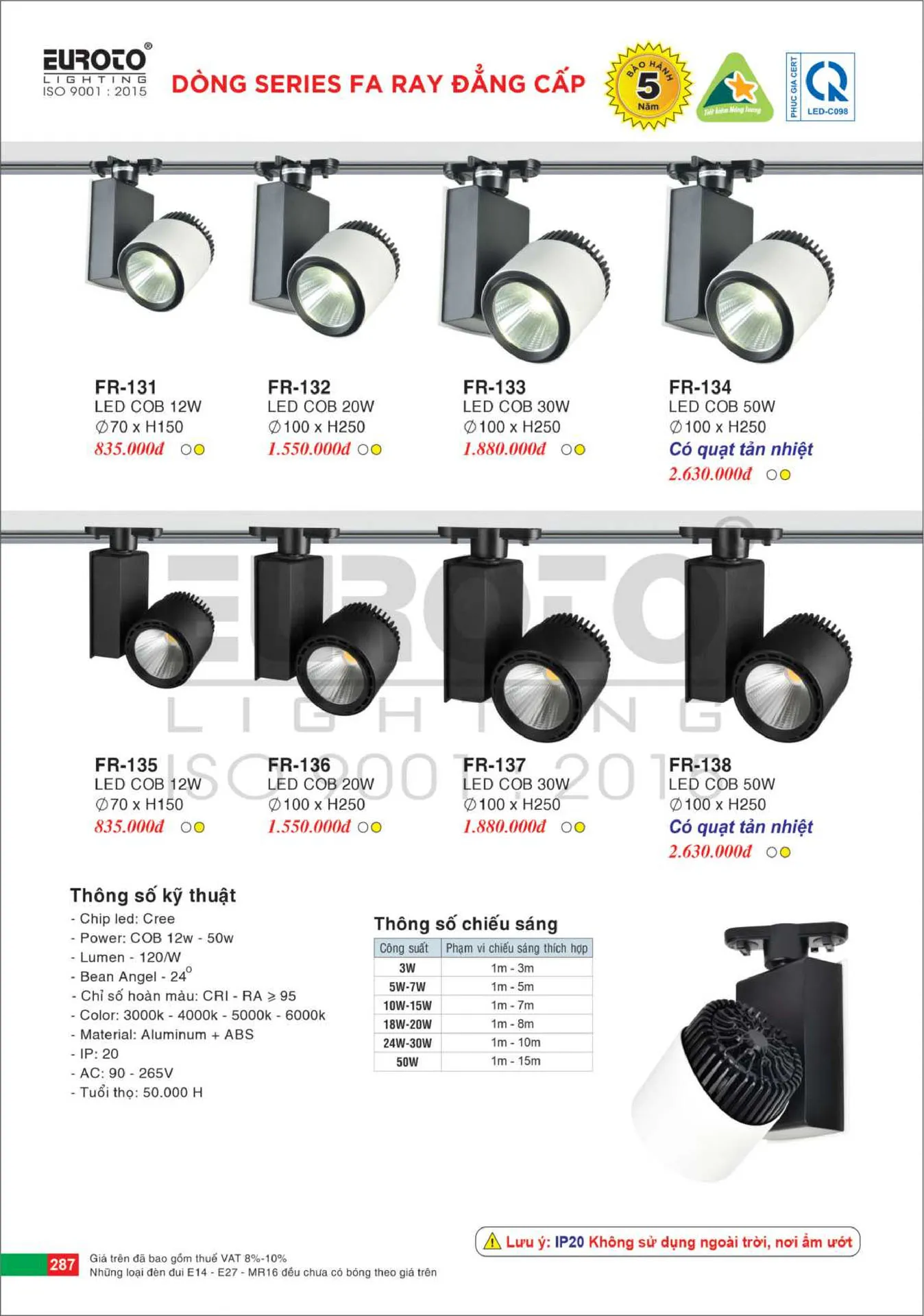 | Đặc điểm | Đèn rọi led FR-134 cho nguồn sáng led chất lượng cao, tuổi thọ dài, thiết kế tản nhiệt giúp tiết kiệm điện năng |