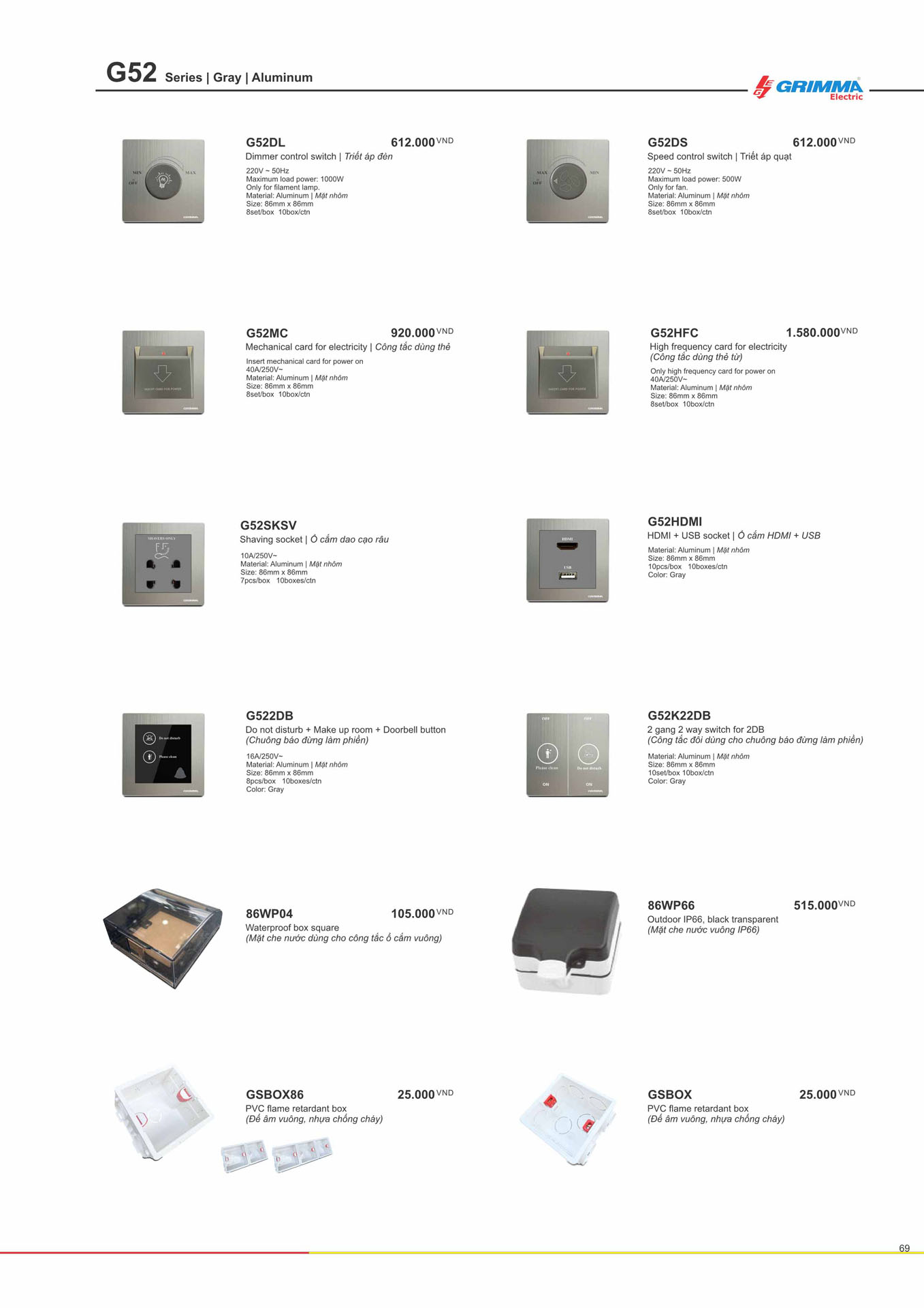 Bộ công tắc dùng thẻ GRIMMA G52MC