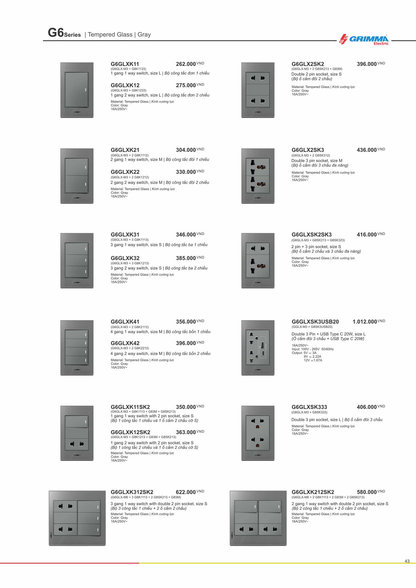 Bộ ổ cắm đôi 3 chấu + USB Type C Grimma G6GLXSK3USB20