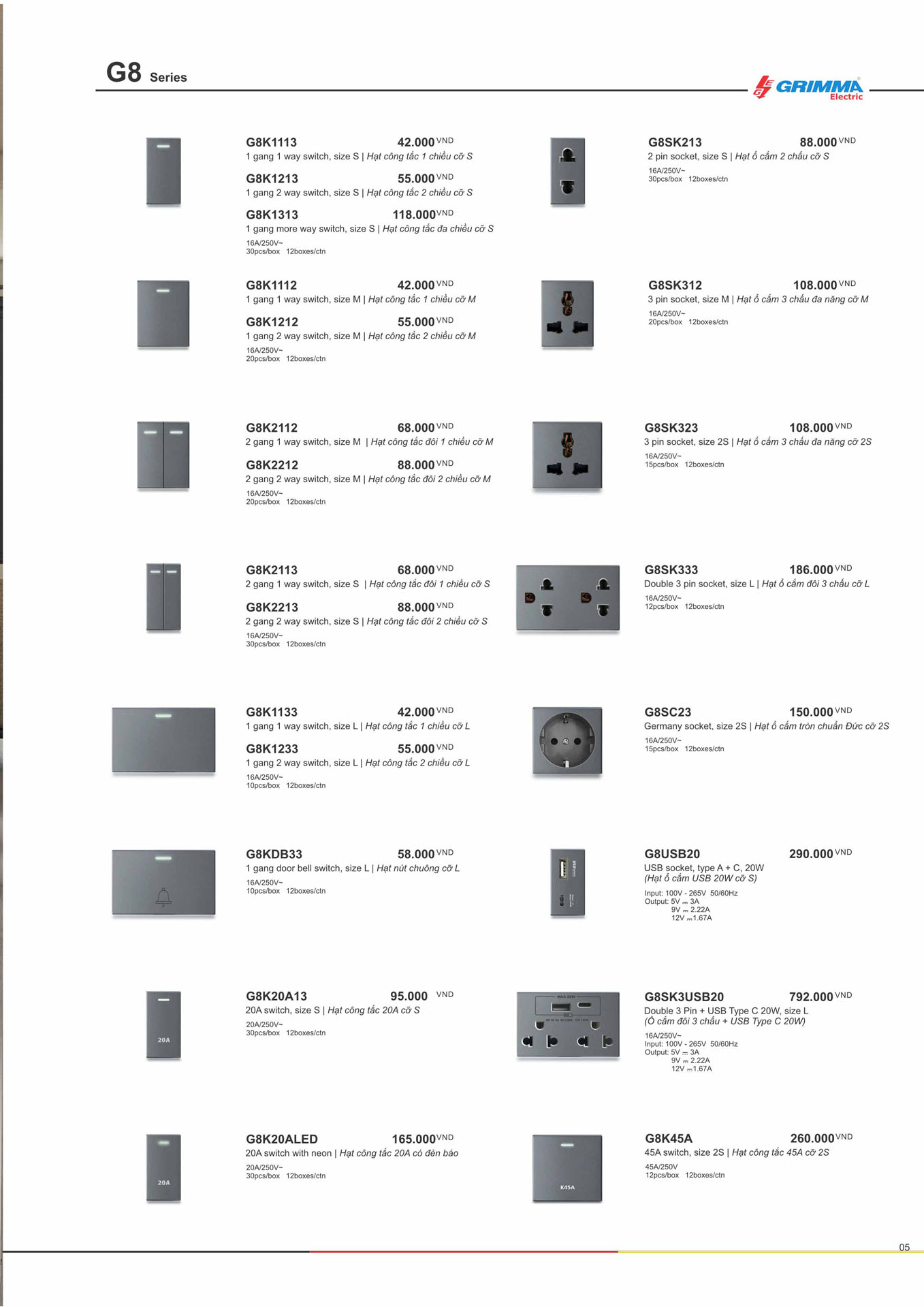 Hạt công tắc 45A Grimma G8K45A