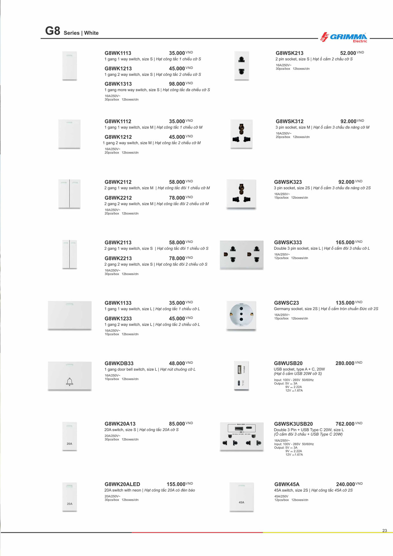 Hạt công tắc đôi 1 chiều size S Grimma G8W series, G8WK2113