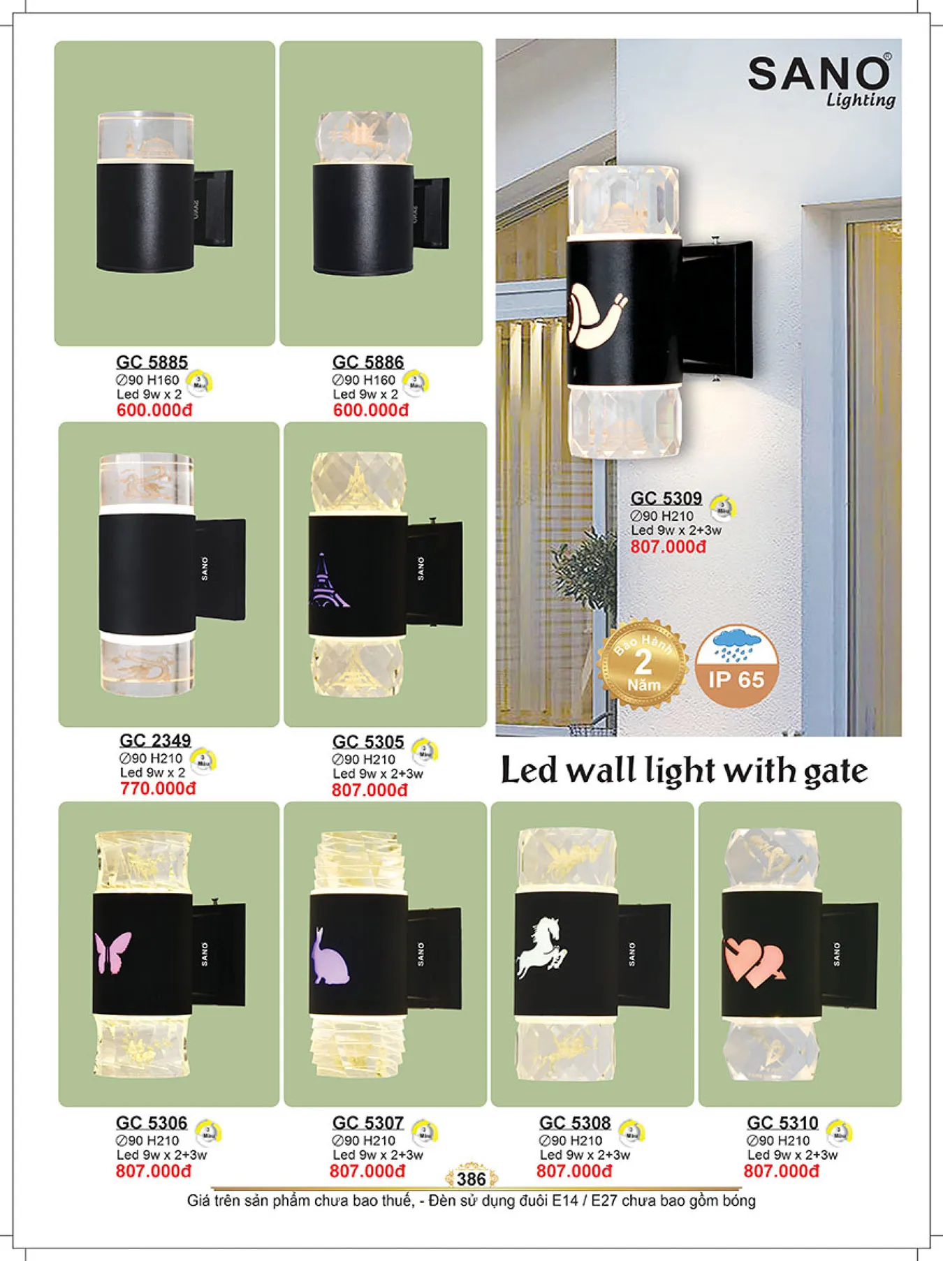 Đèn vách gắn cổng Sano GC 5309 Ø90*H210 Led 9W*2+3W