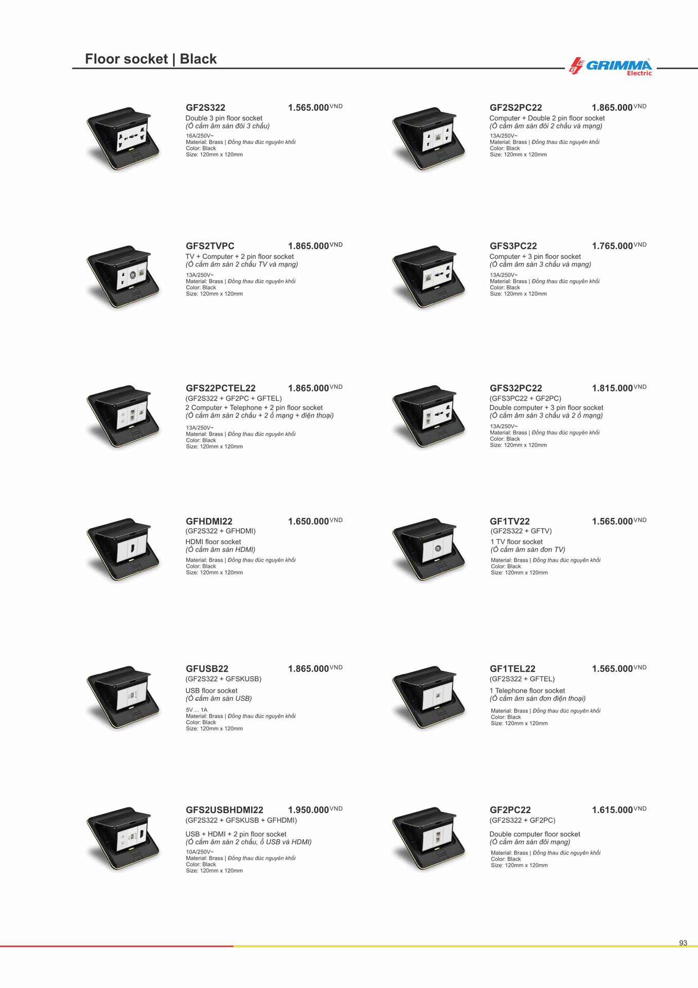 Ổ cắm âm sàn 3 chấu và mạng Grimma GFS3PC22
