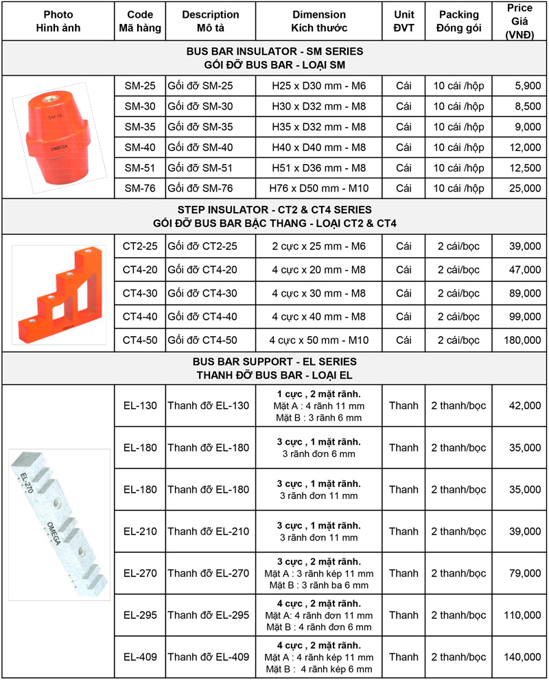 Gối đỡ Bus Bar bậc thang OMEGA loại CT2 & CT4