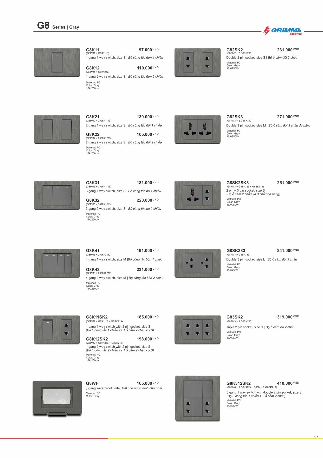 GRIMMA electric - thương hiệu đến từ Cộng Hoà Liên Bang Đức, các sản phẩm thiết bị, công tắc, ổ cắm điện GRIMMA được sản xuất theo tiêu chuẩn Châu Âu, chất lượng vượt trội, bền bỉ với thời gian.