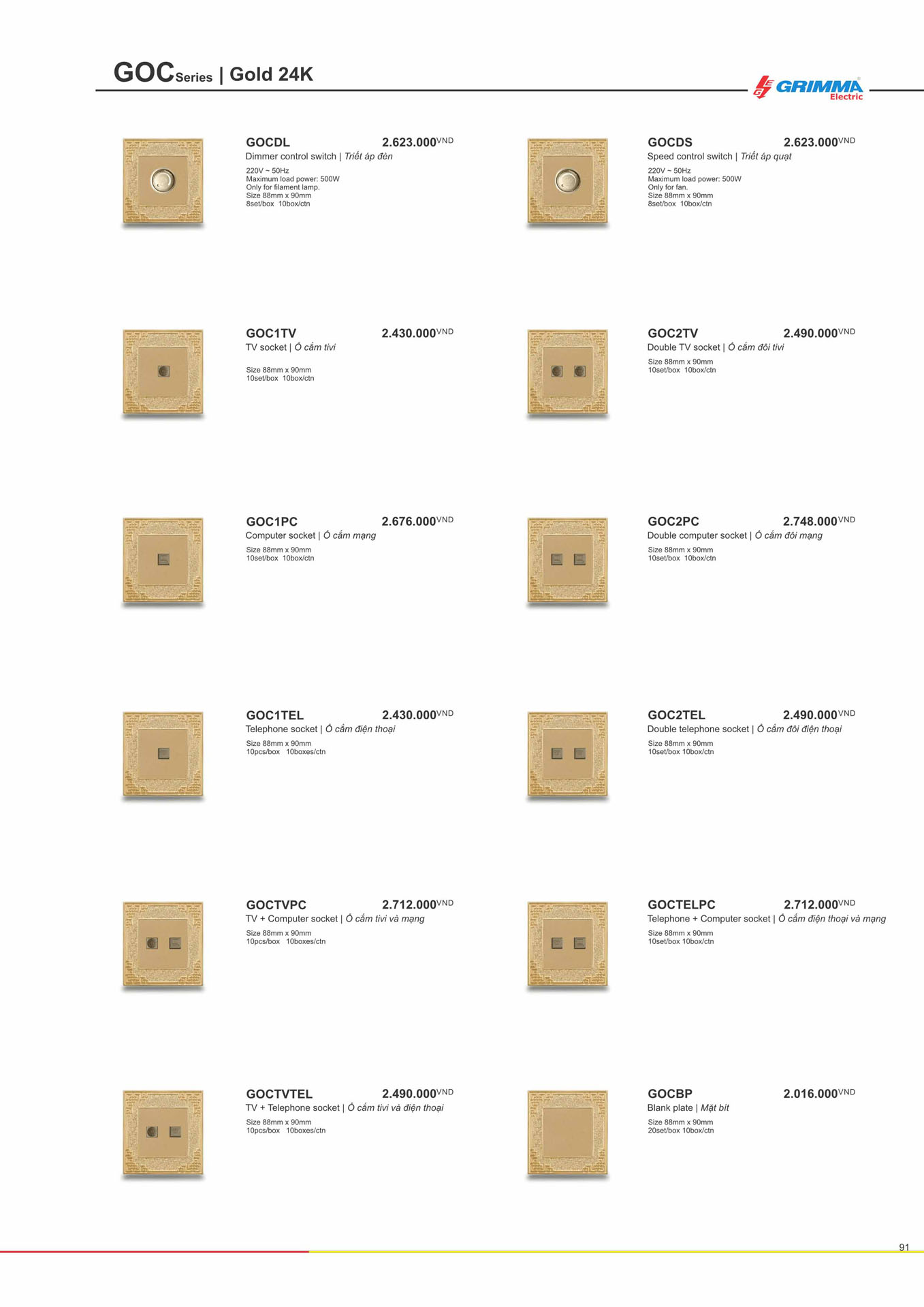 Grimma GOC series được sản xuất trên dây chuyền công nghệ cao của Cộng hòa Liên bang Đức, sản phẩm có độ bền cao, mẫu mã thời trang, mạ vàng 24K sang trọng, phù hợp với phong cách thiết kế nội thất cổ điển hoặc tân cổ điển, được nhiều công trình cao cấp tin tưởng lựa chọn.