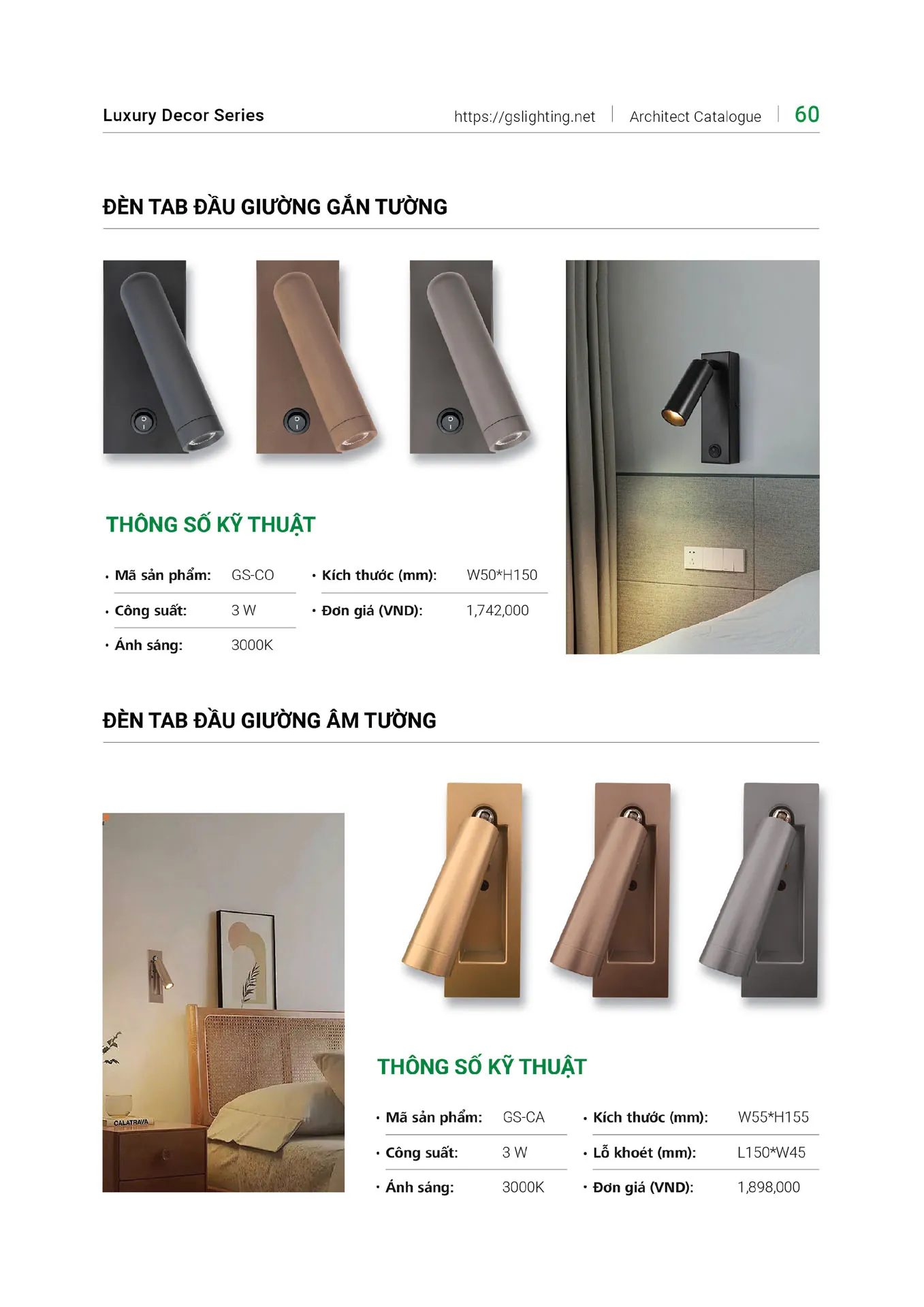 Đèn gắn tường GS Llighting GS-CO 5W TAB đầu giường