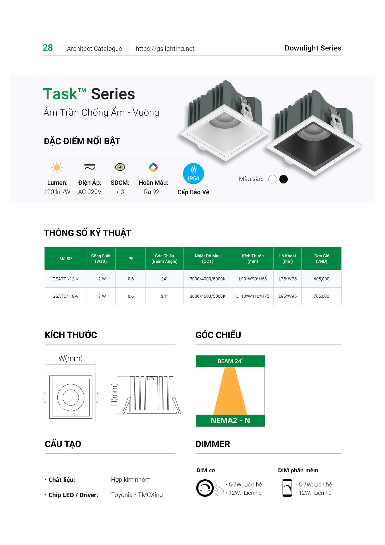 Đèn âm trần vuông GS Lighting GSATCN-V chống ẩm IP54