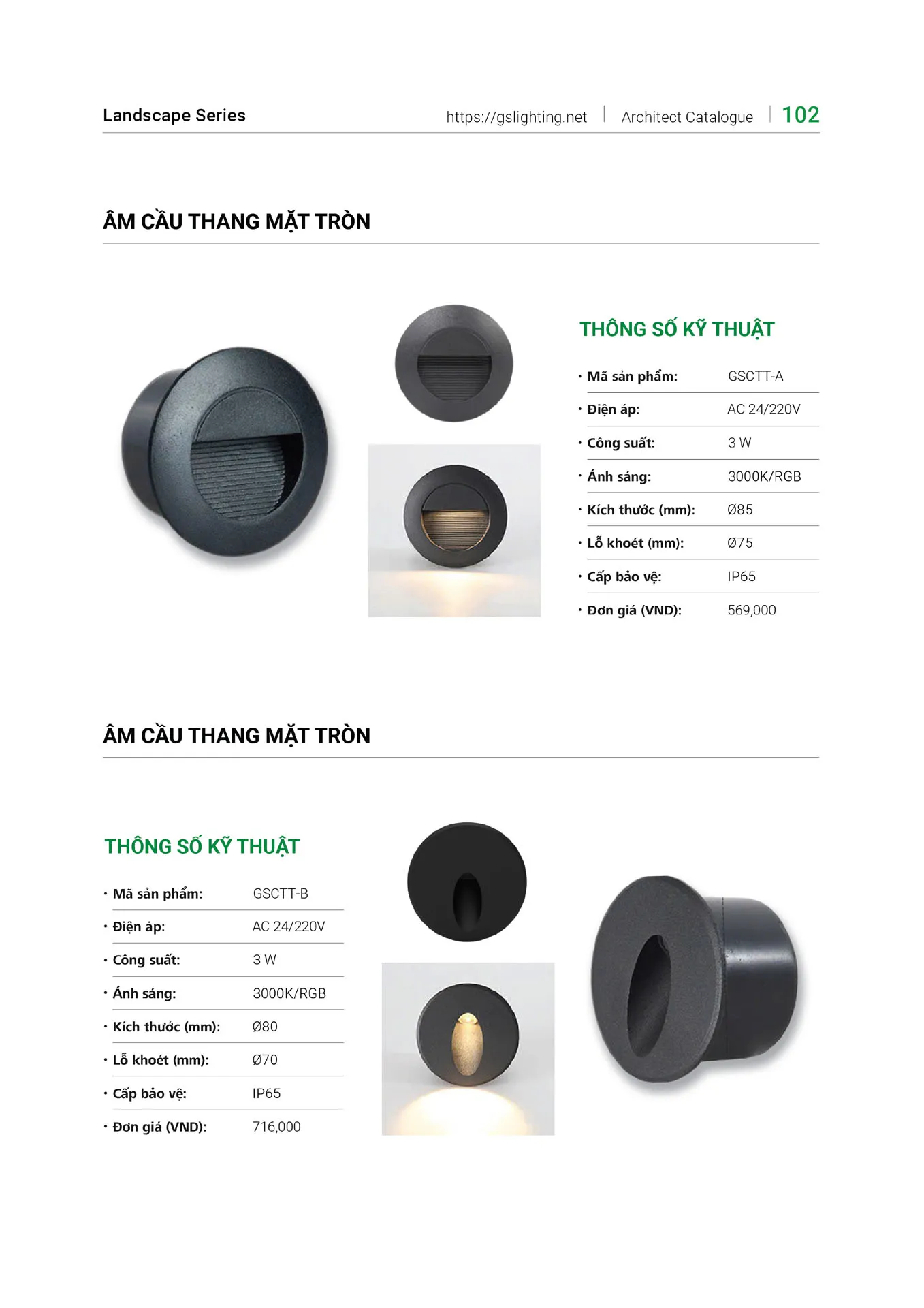 Đèn Led âm cầu thang GS Lighting GSCTT-A 3W mặt tròn