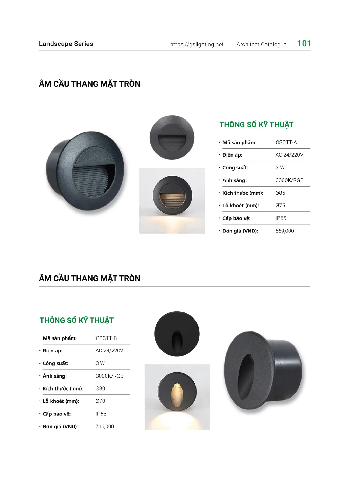 Đèn Led âm cầu thang GS Lighting GSCTT-B 3W mặt tròn