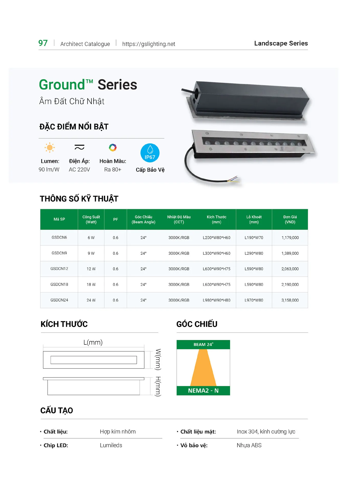 Đèn Led âm đất GS Lighting GSDCN Hình Chữ Nhật