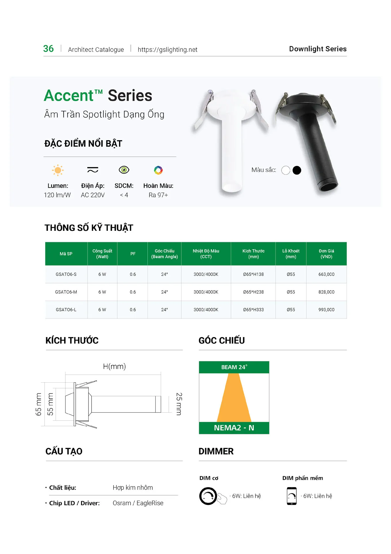 Đèn âm trần Spotlight GS Lighting GSATO6 dạng ống