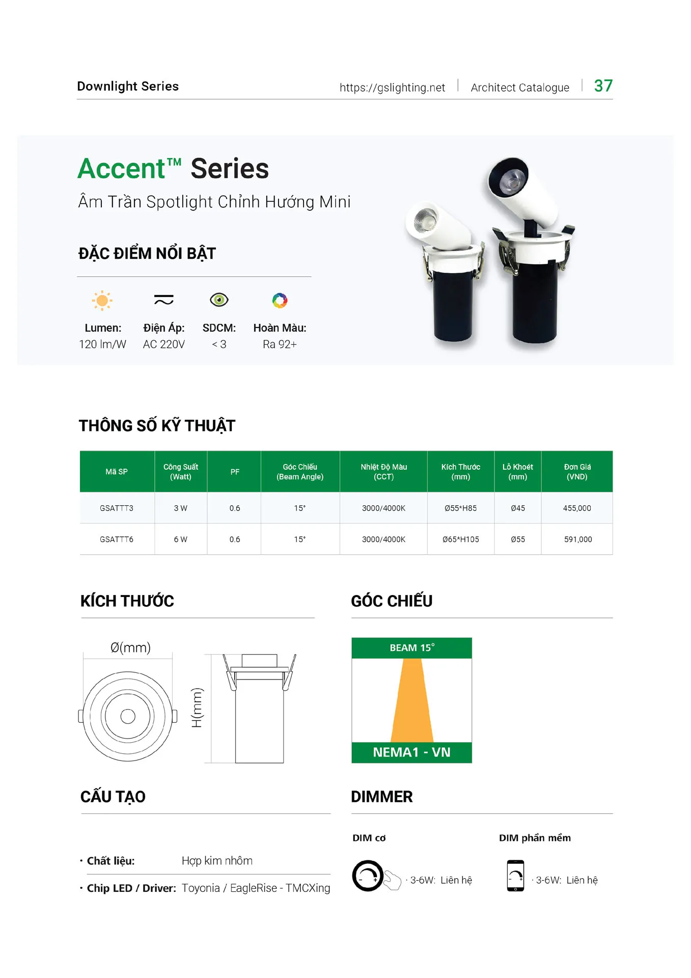 Đèn âm trần Spotlight mini GS Lighting GSATTT chỉnh hướng