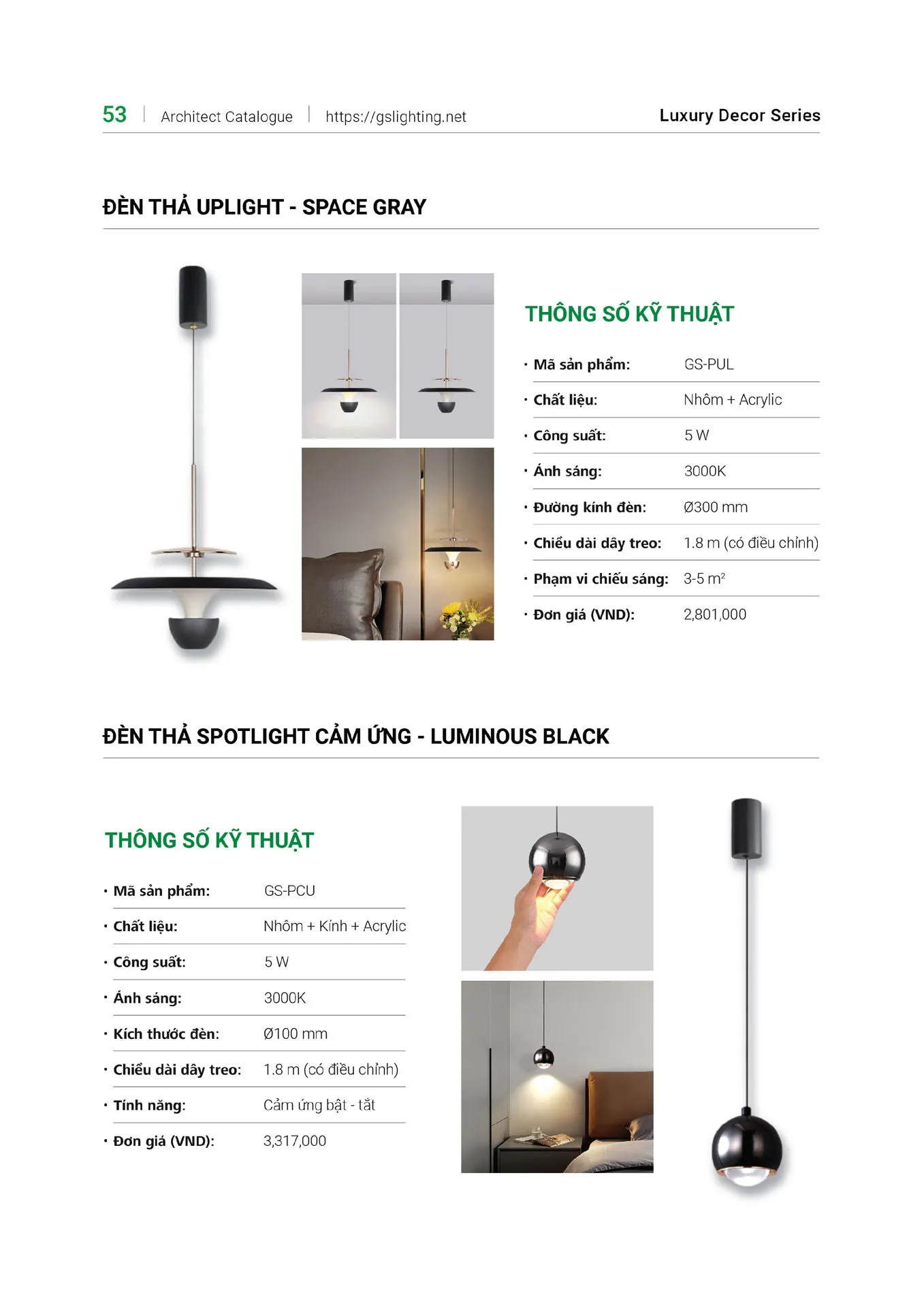 Đèn thả Uplight - Space Gray GS lighting US-PUL 5W