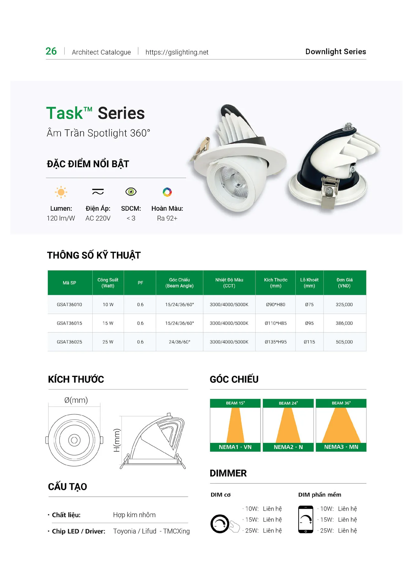 Đèn âm trần Spotlight GS Lighting GSAT360 Xoay 360°
