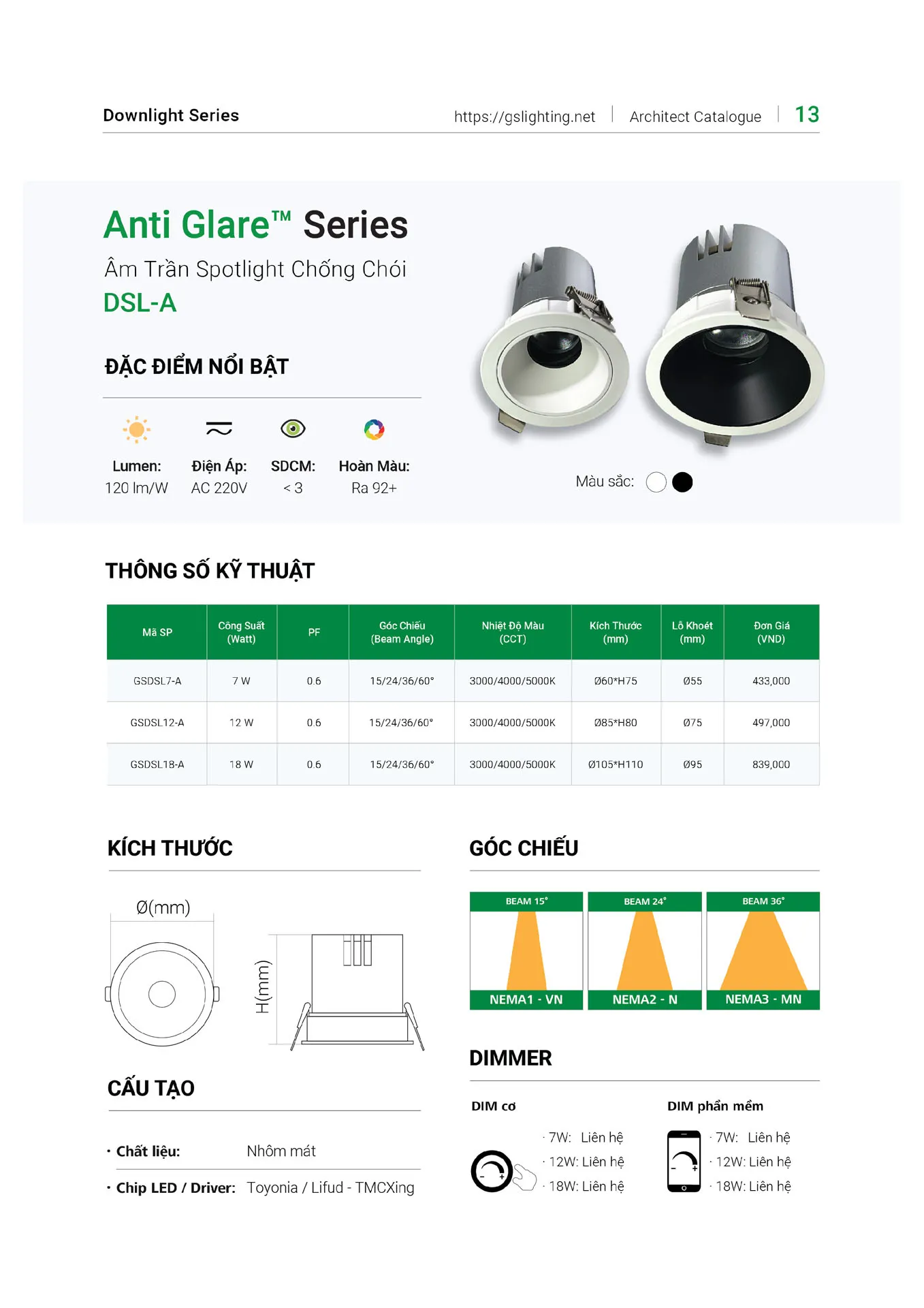 Đèn Led âm trần chiếu điếm GS Lighting GSDSL-A