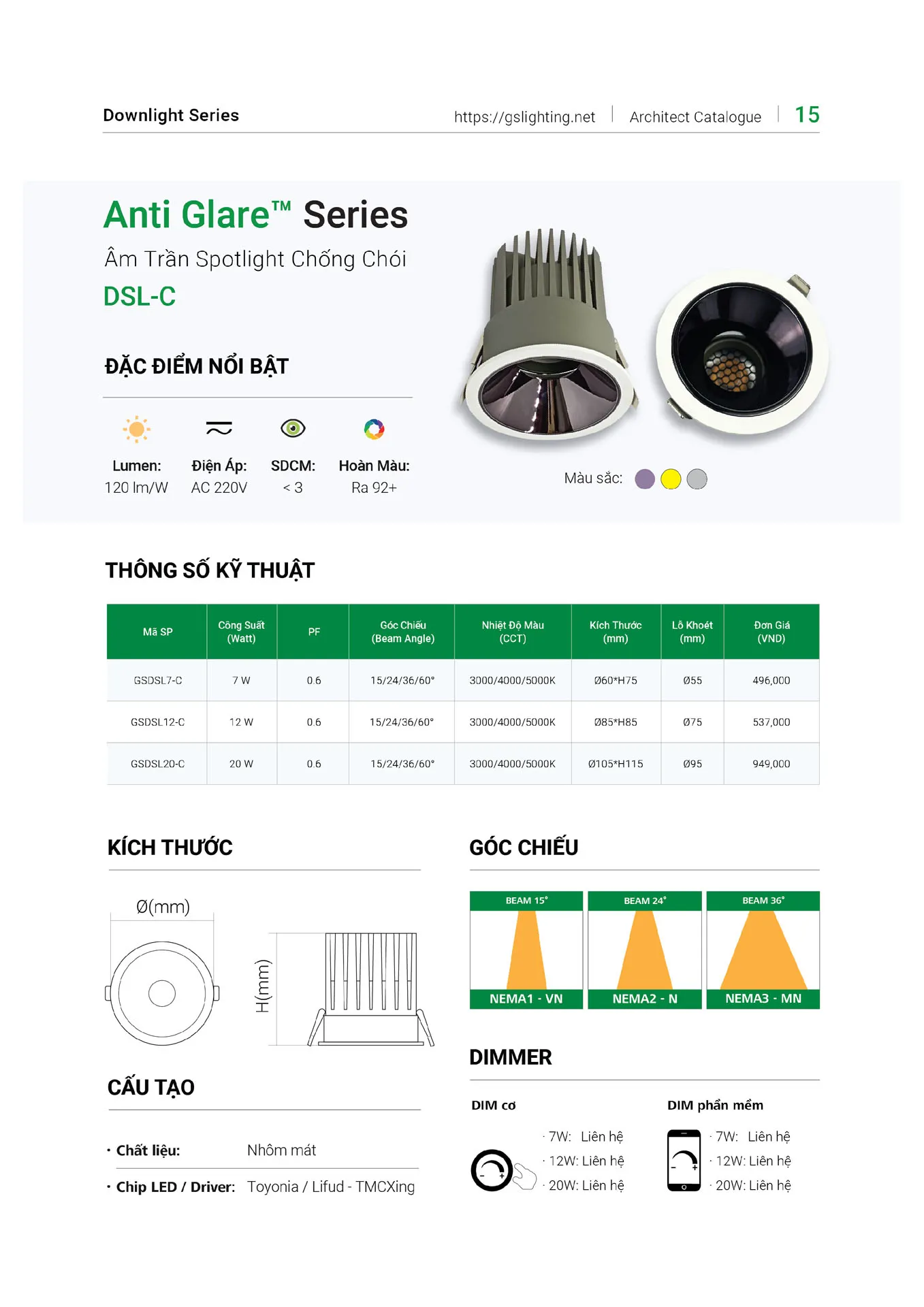 Đèn Led âm trần chiếu điếm GS Lighting GSDSL-C