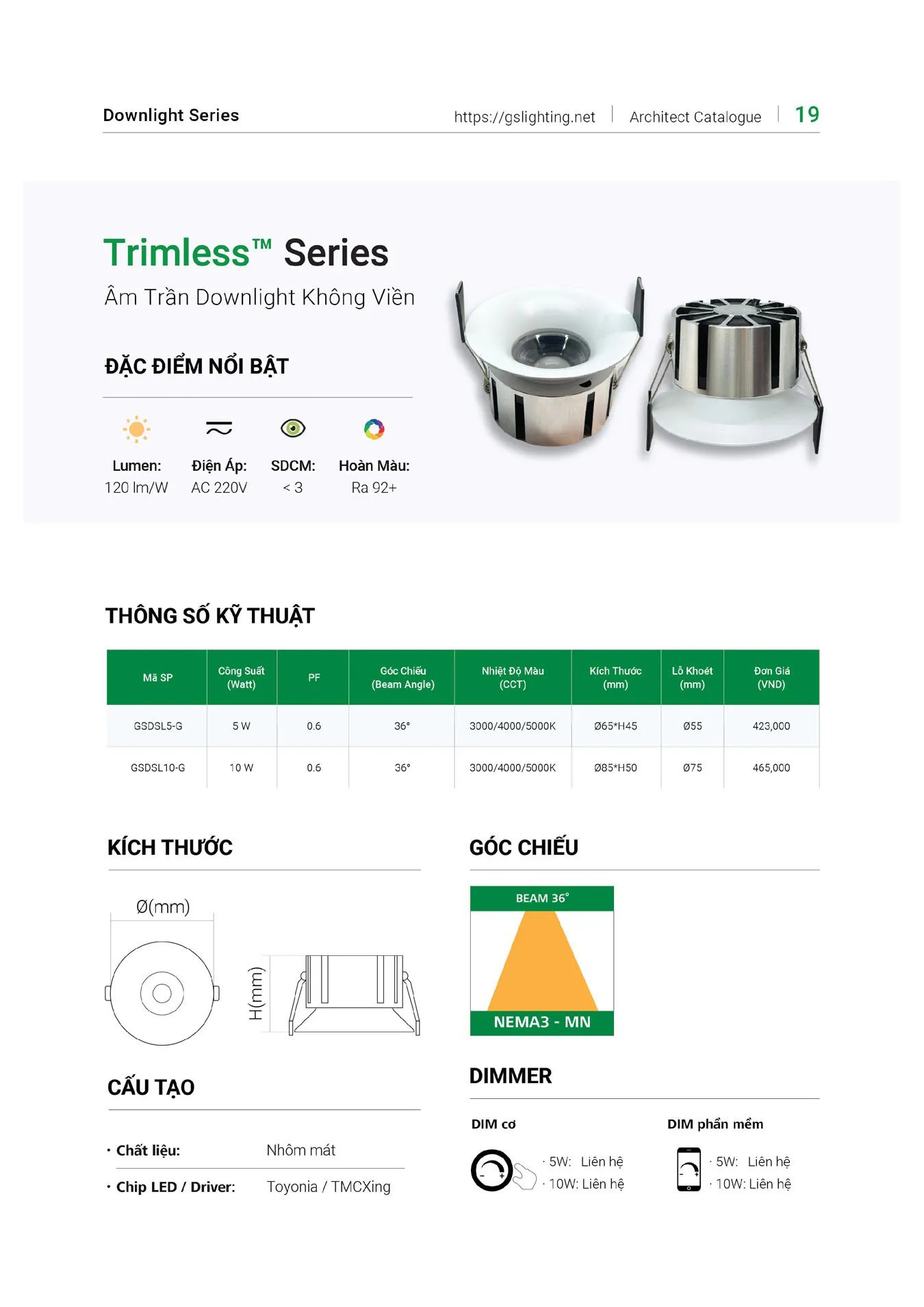 Đèn âm trần Downlight GS Lighting GSDSL-G không viền