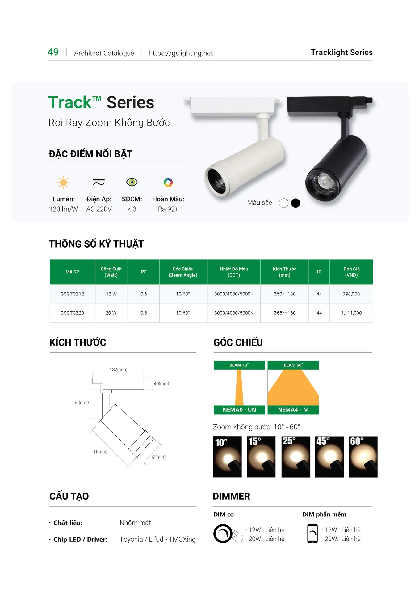 Đèn rọi ray GS Lighting GSGTCZ Zoom không bước