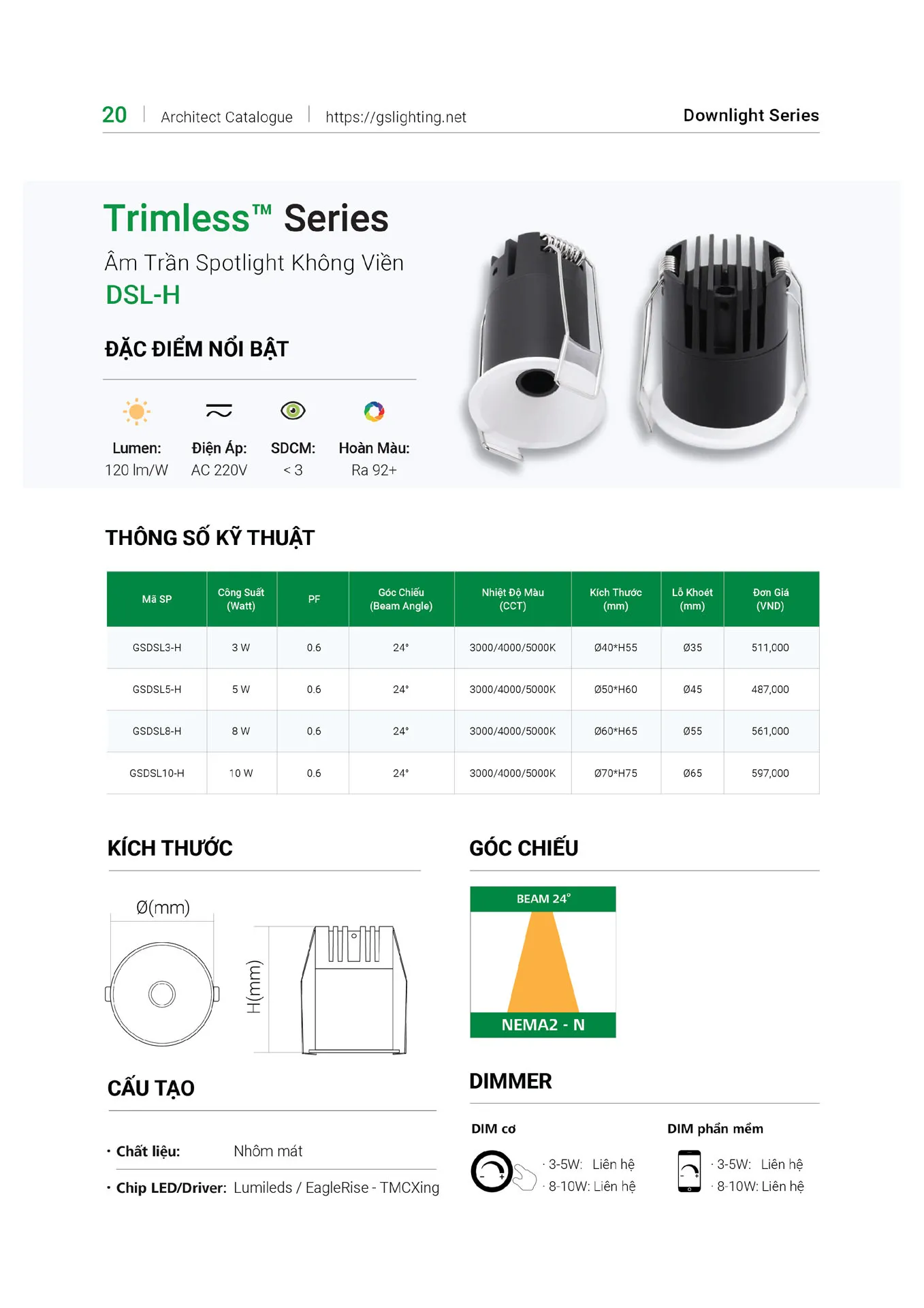 Đèn âm trần Spotlight GS Lighting GSDSL-H không viền