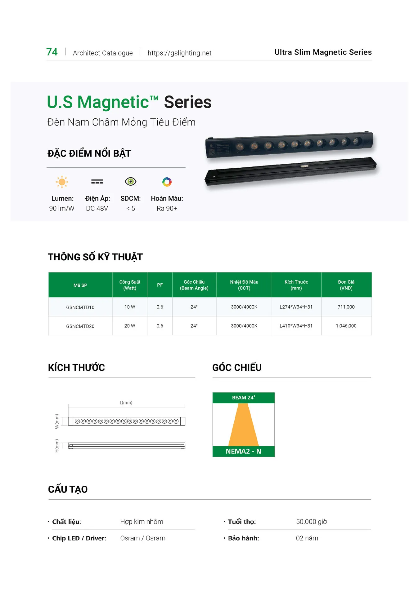 Đèn nam châm tiêu điểm GS Lighting GSNCMTD siêu mỏng