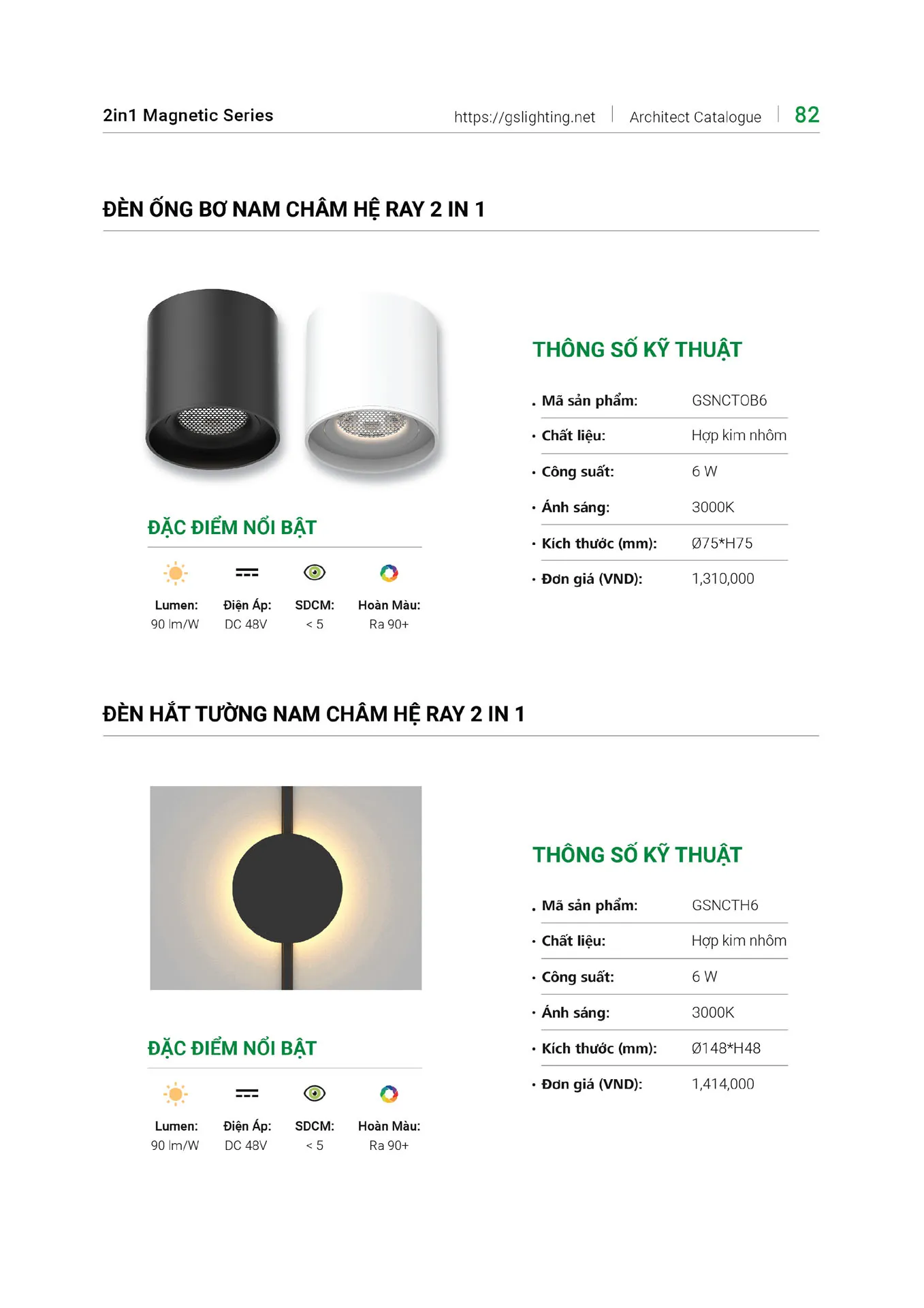 Đèn ống bơ nam châm GS Lighting GSNCTOB6 hệ ray 2 in 1 6W