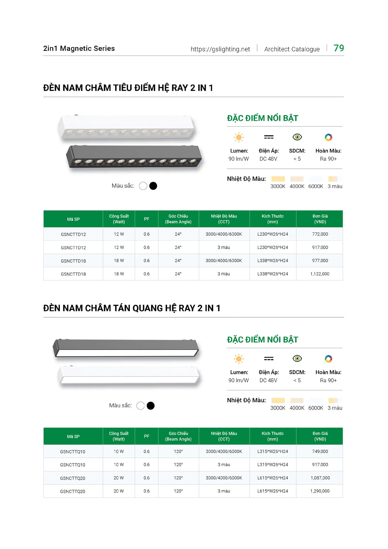 Đèn nam châm tán quang GS Lighting GSNCTTQ hệ ray 2 in 1