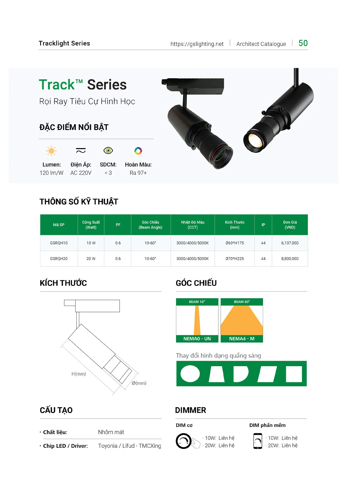 Đèn rọi ray GS Lighting GSRQH tiêu cự hình học
