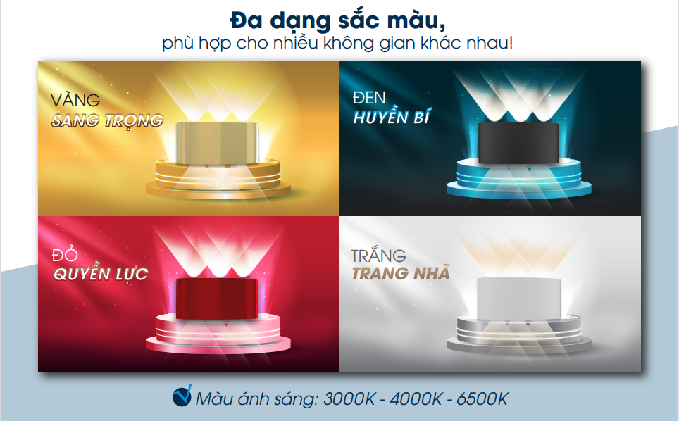 Nhiệt độ màu: 3000/4000/6500K