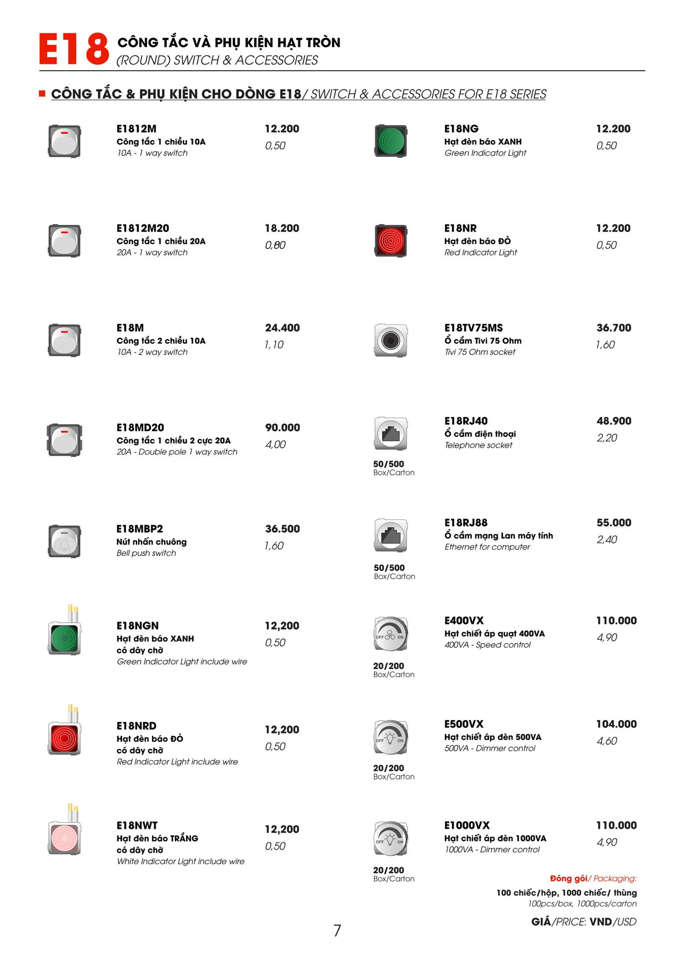 E18NG - Hạt đèn báo 220V loại tròn không dây LiOA E18NG